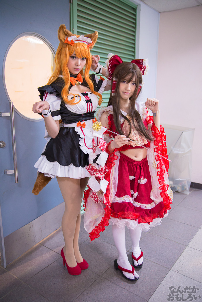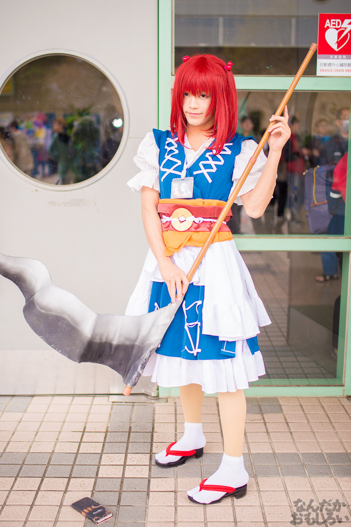 2日目は「博麗神社例大祭」ブース出展をされていた影響もあって、コスプレエリアでは博麗霊夢や霧雨魔理沙、東風谷早苗など「東方Project」のコスプレイヤーさんが目立っていました。またほかにも「干物妹!うまるちゃん」うまるちゃんコスプレや、あのゴンさんなども登場し、会場を盛り上げていました。