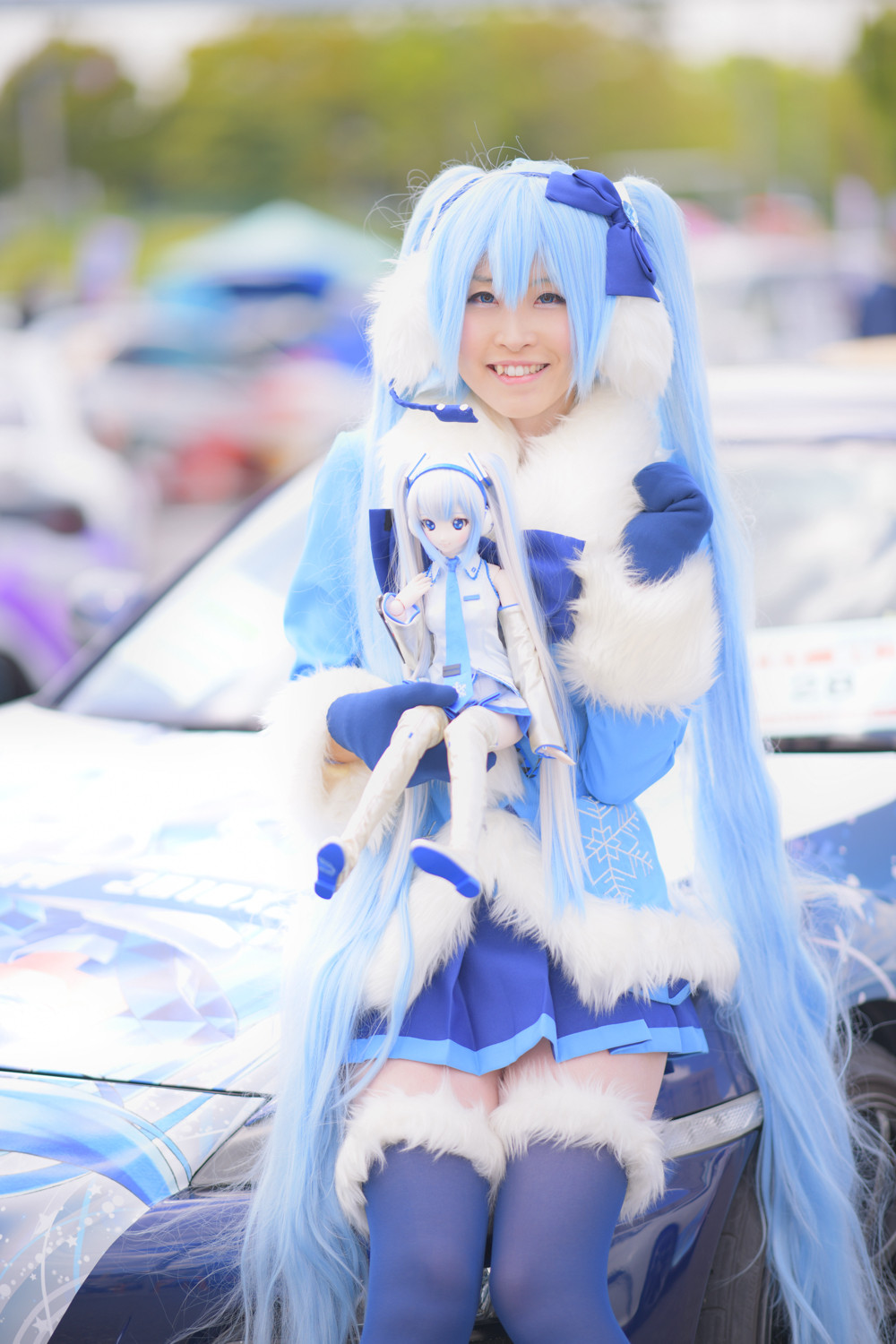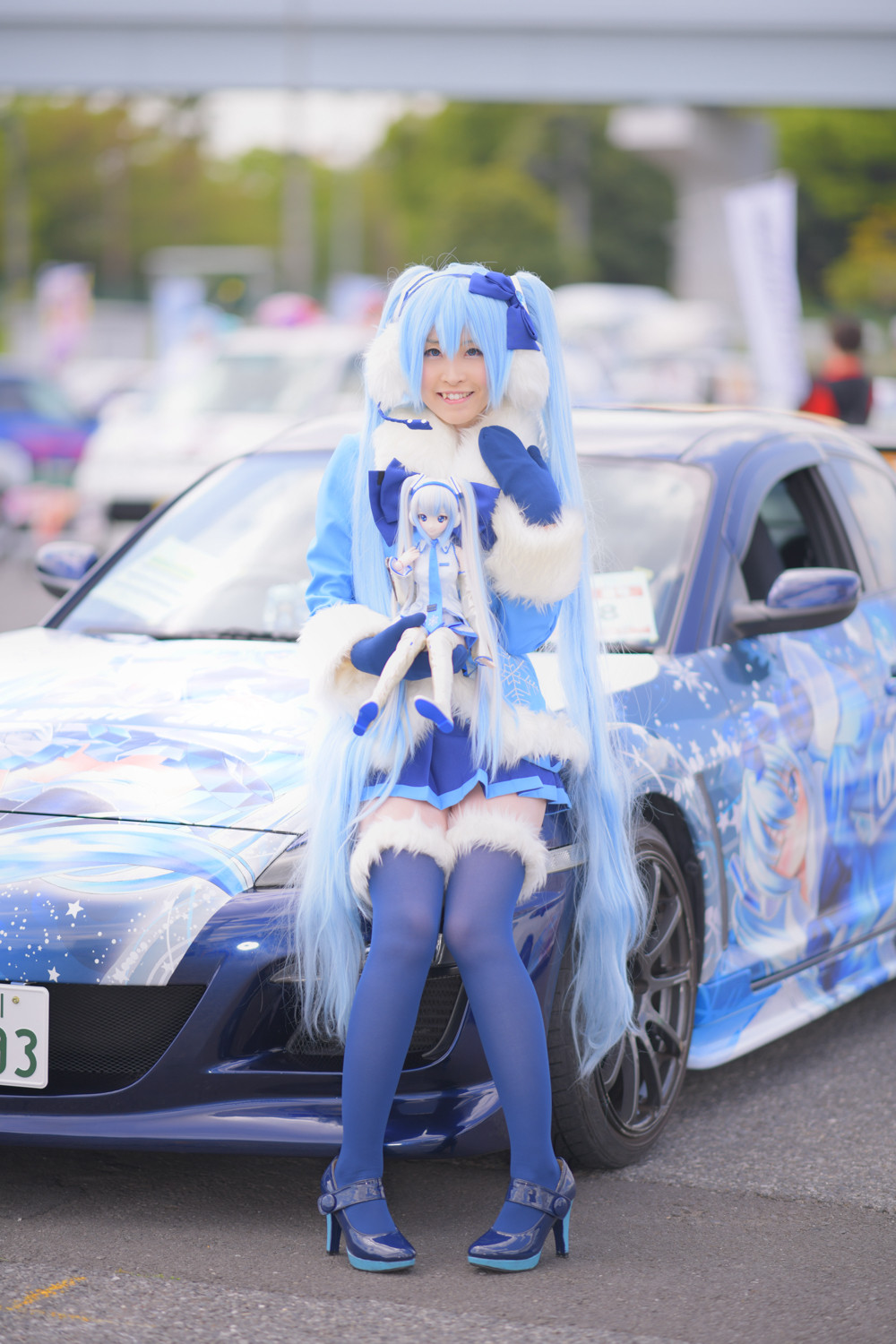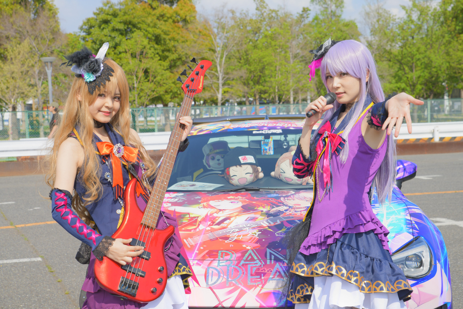 作品では、初音ミクや「ラブライブ!」「アイドルマスター シンデレラガールズ」といった痛車でも多く台数が展示されていた作品から、「ゆるキャン△」「バンドリ! ガールズバンドパーティ!」とここ最近でブームとなった作品のコスプレも見ることができました。