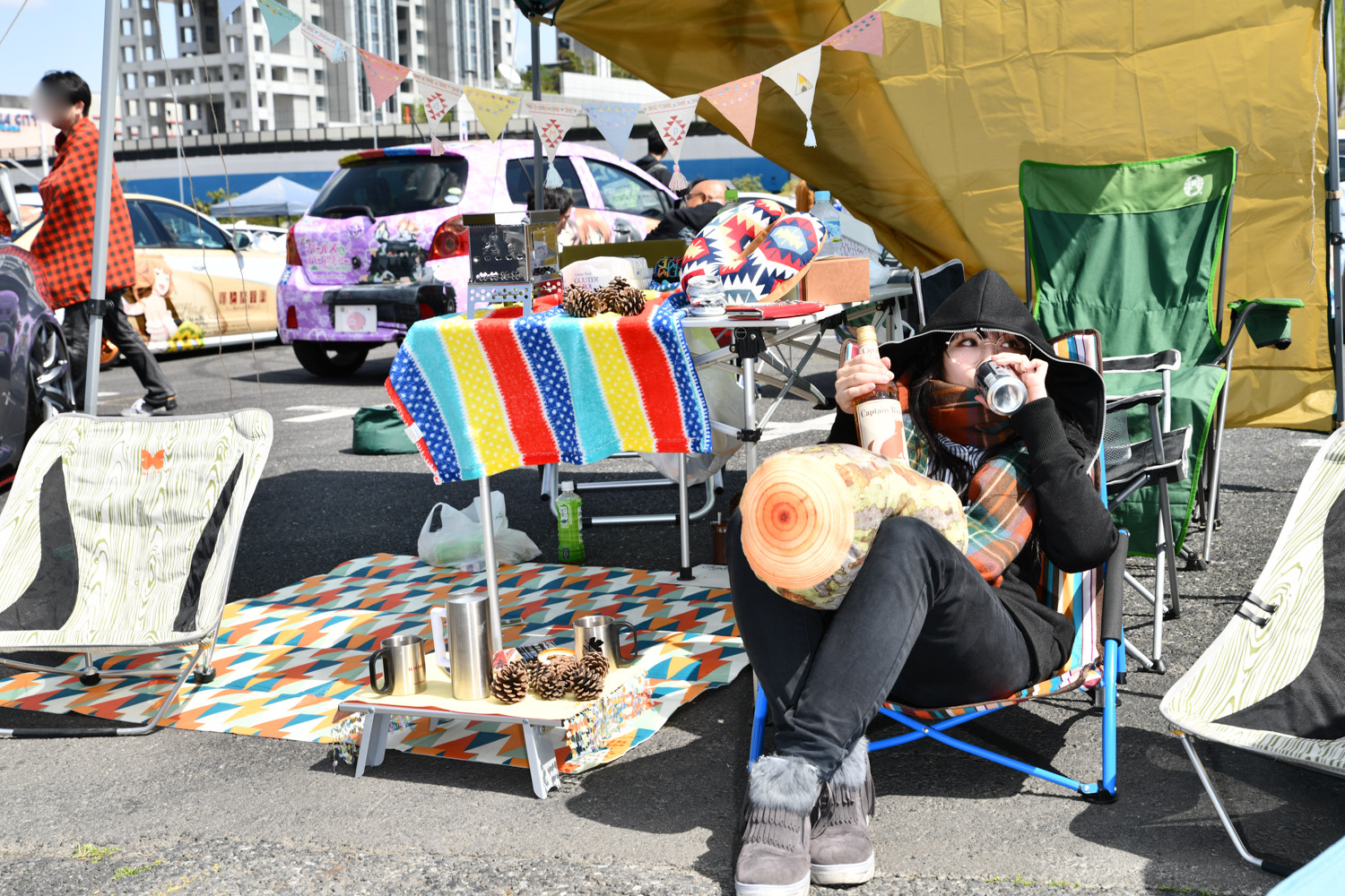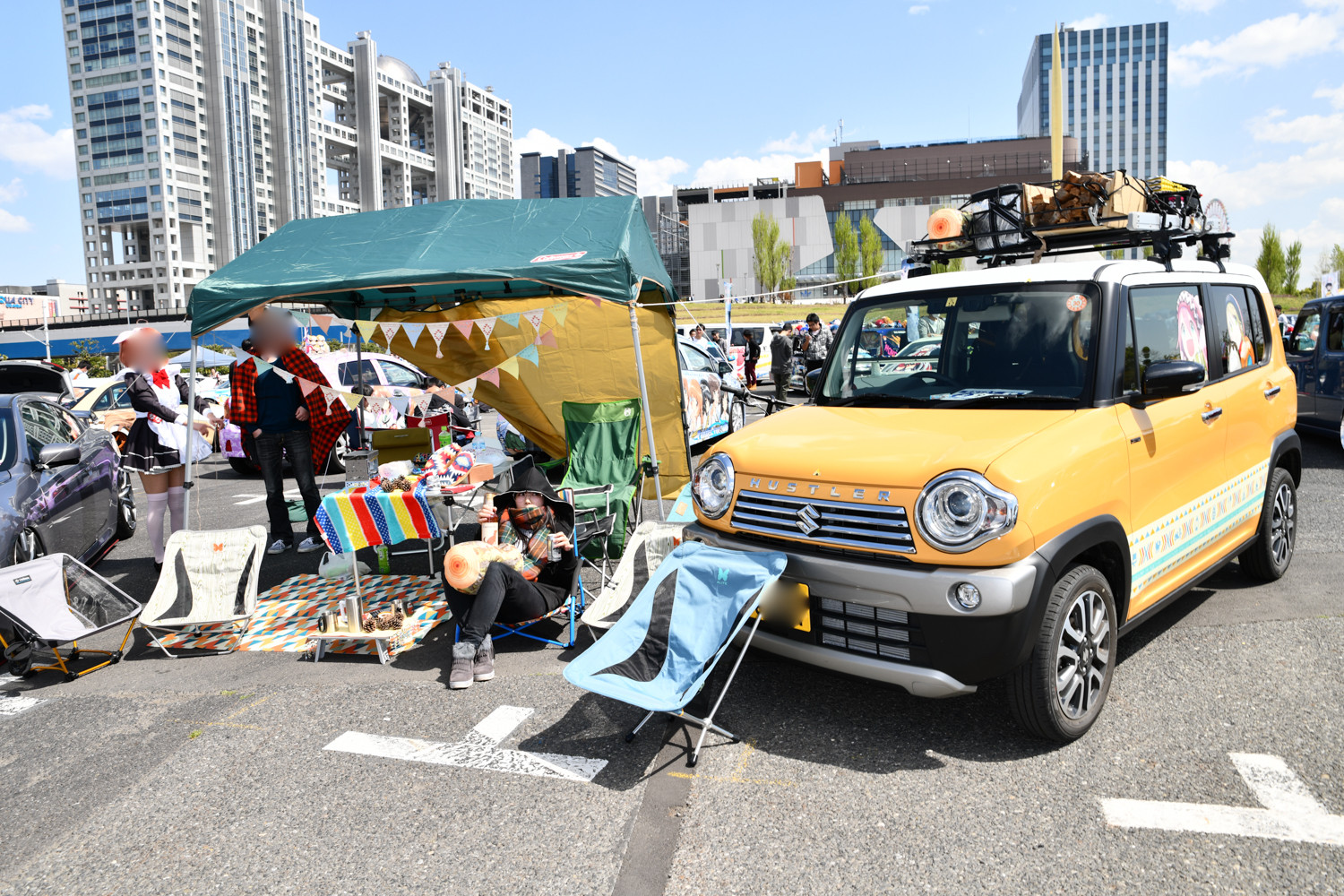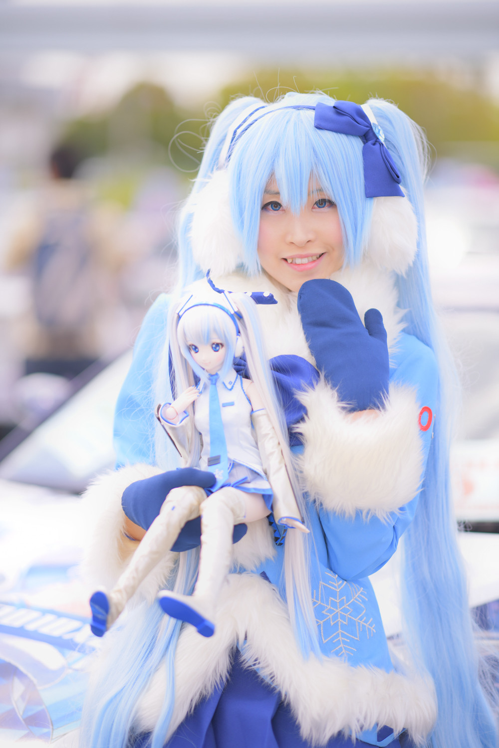 作品では、初音ミクや「ラブライブ!」「アイドルマスター シンデレラガールズ」といった痛車でも多く台数が展示されていた作品から、「ゆるキャン△」「バンドリ! ガールズバンドパーティ!」とここ最近でブームとなった作品のコスプレも見ることができました。