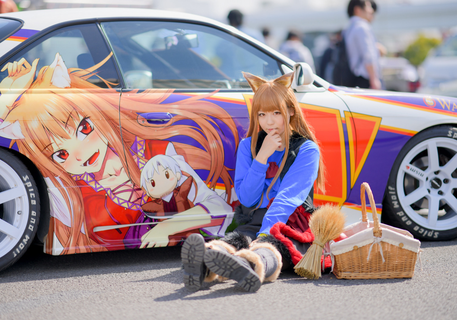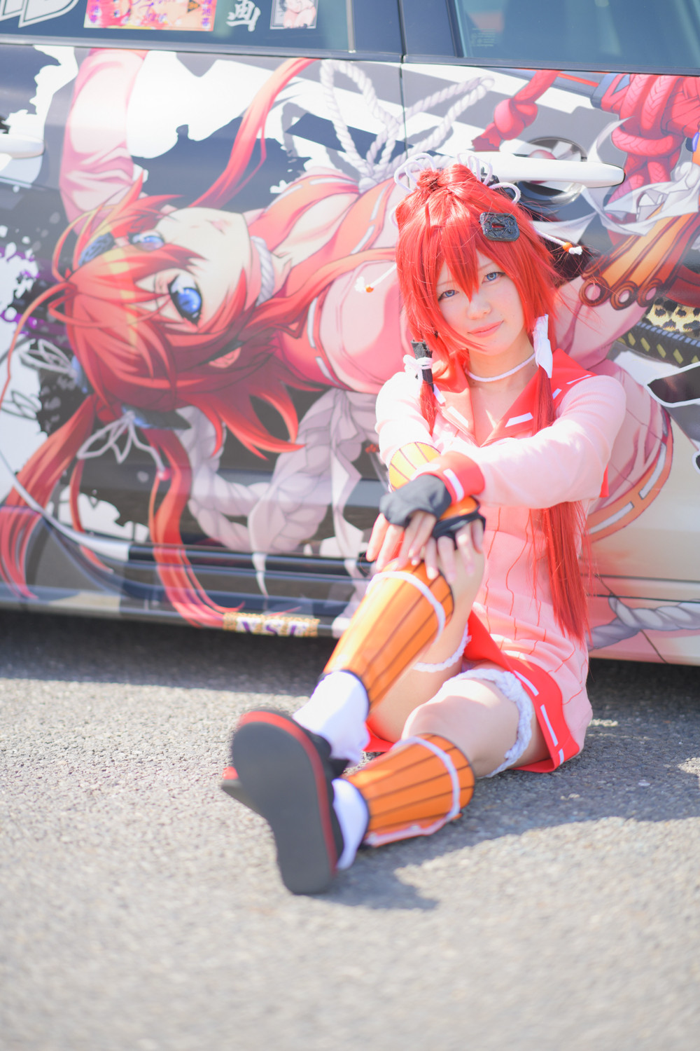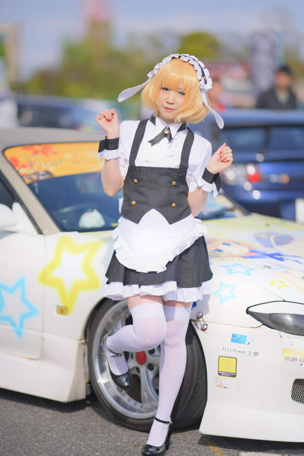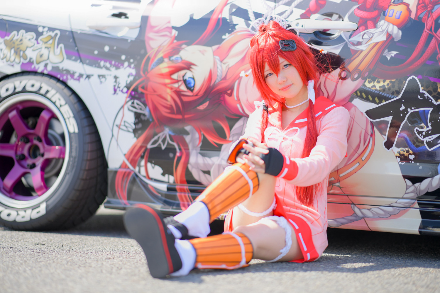 ちなみに余談ですが、ほかのコスプレイベントと大きく違う点として、痛車をバックに撮影することが多く、ほぼ囲み撮影であること。またこういうイベントの場合、被写体と距離が離れられるので、望遠レンズを多様する人が多いこと、スペースにも余裕があるので、ライトスタンドなど大型機材を持ち込んで撮影すること、などができるのが、ほかのイベントではなかなかできない魅力かなと思います。