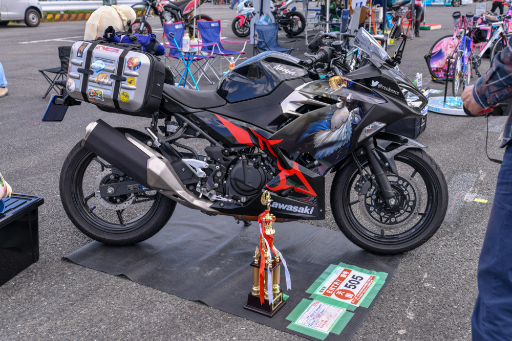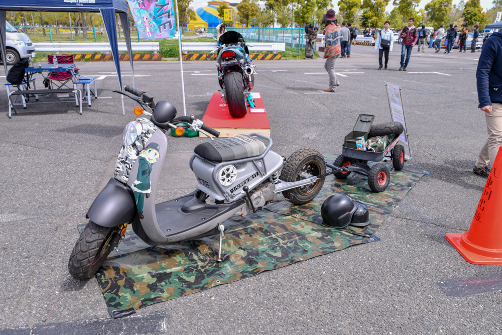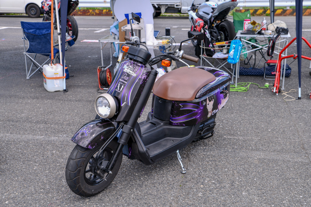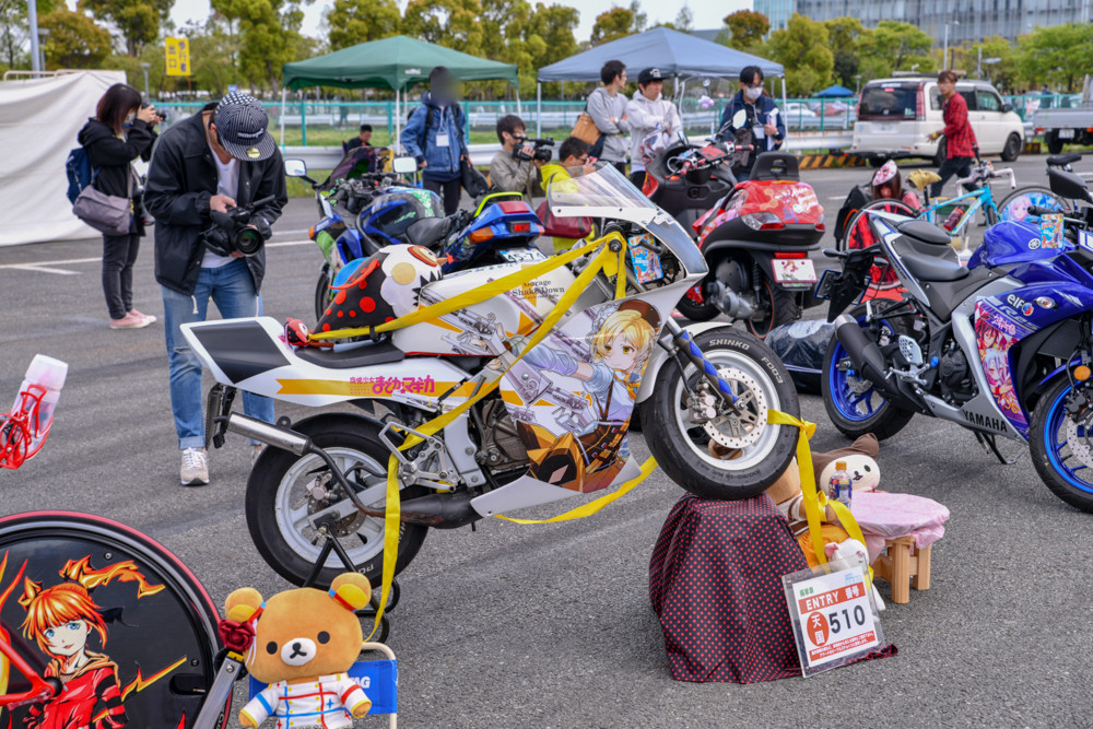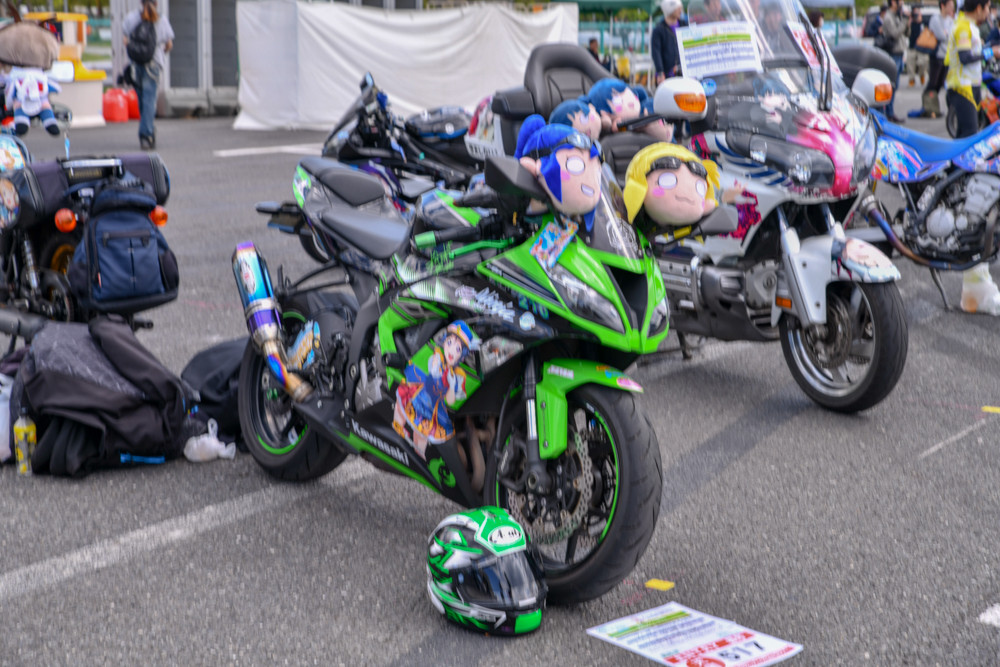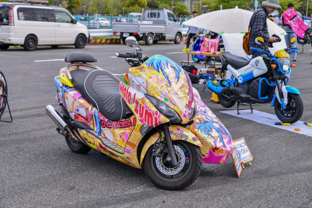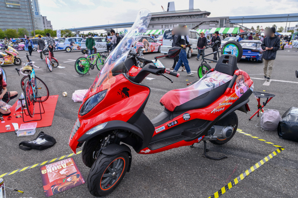 痛単車や痛チャリの場合、痛車に比べると小さい乗り物なので、展示エリアはそれほど大きくありませんが、台数は多いです。またラッピングだけでなく独特の形状をしたものや展示方法も様々あるので、二輪車が好きな人も、そうでない人も楽しめますよ。
