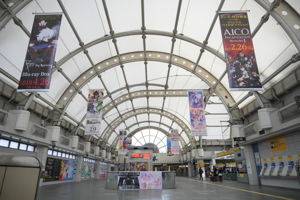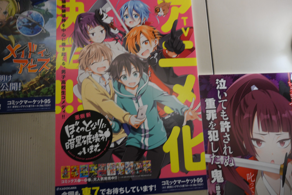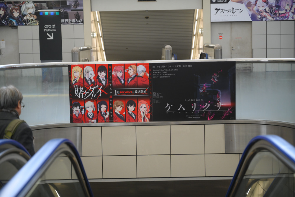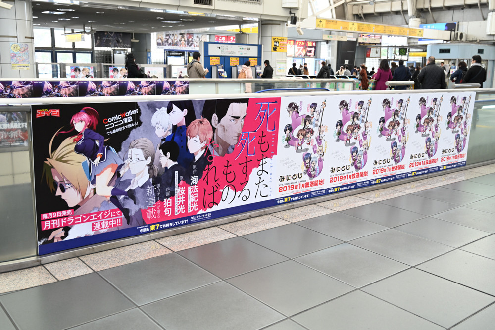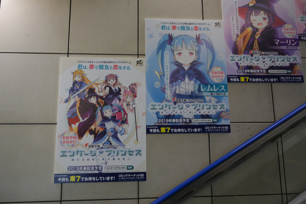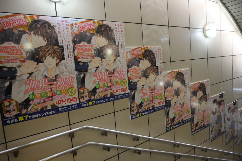 国際展示場駅構内は、毎年恒例たくさんのアニメや漫画、ライトノベルなどの広告が掲出されていました。今回、撮影にやや失敗してブレてる写真の割合が多いと思いますが許してください。