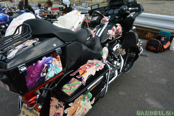 痛Gふぇすたでは、痛車以外にも痛単車の展示も行われていました。魔法少女まどか☆マギカ、ラブライブ!初音ミク、魔法少女リリカルなのは、ガールズ&パンツァーなどに出てくるキャラクターが施しているバイクが多数あり、バイクは国産原付から大型バイク、ハーレーなどの外車もあったり。