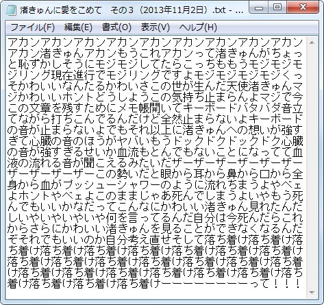 暗殺教室史に残る、渚くん女装回。今だからぶっちゃけるが、このときの感想レビューを書き上げるのに3時間以上かかってる。いろんな感想レビューを書いてきたが、ここまで時間のかかる感想はなかった。それは、どう書いていいのか悩んでいたのではなく、書いてる途中で渚くんの女装を思い出してしまいまともに書けなかったのだ。実際、ホントに何もかけなかったので、手前にキーボードを置き、パソコンでメモ帳を開き、本能のままにキーボードを打たせた。その結果が…渚きゅんに愛をこめて その1(2013年11月2日).txt、渚きゅんに愛をこめて その2(2013年11月2日).txt、渚きゅんに愛をこめて その3(2013年11月2日).txt、渚きゅんに愛をこめて その4(2013年11月2日).txt、渚きゅんに愛をこめて その5(2013年11月2日).txt。