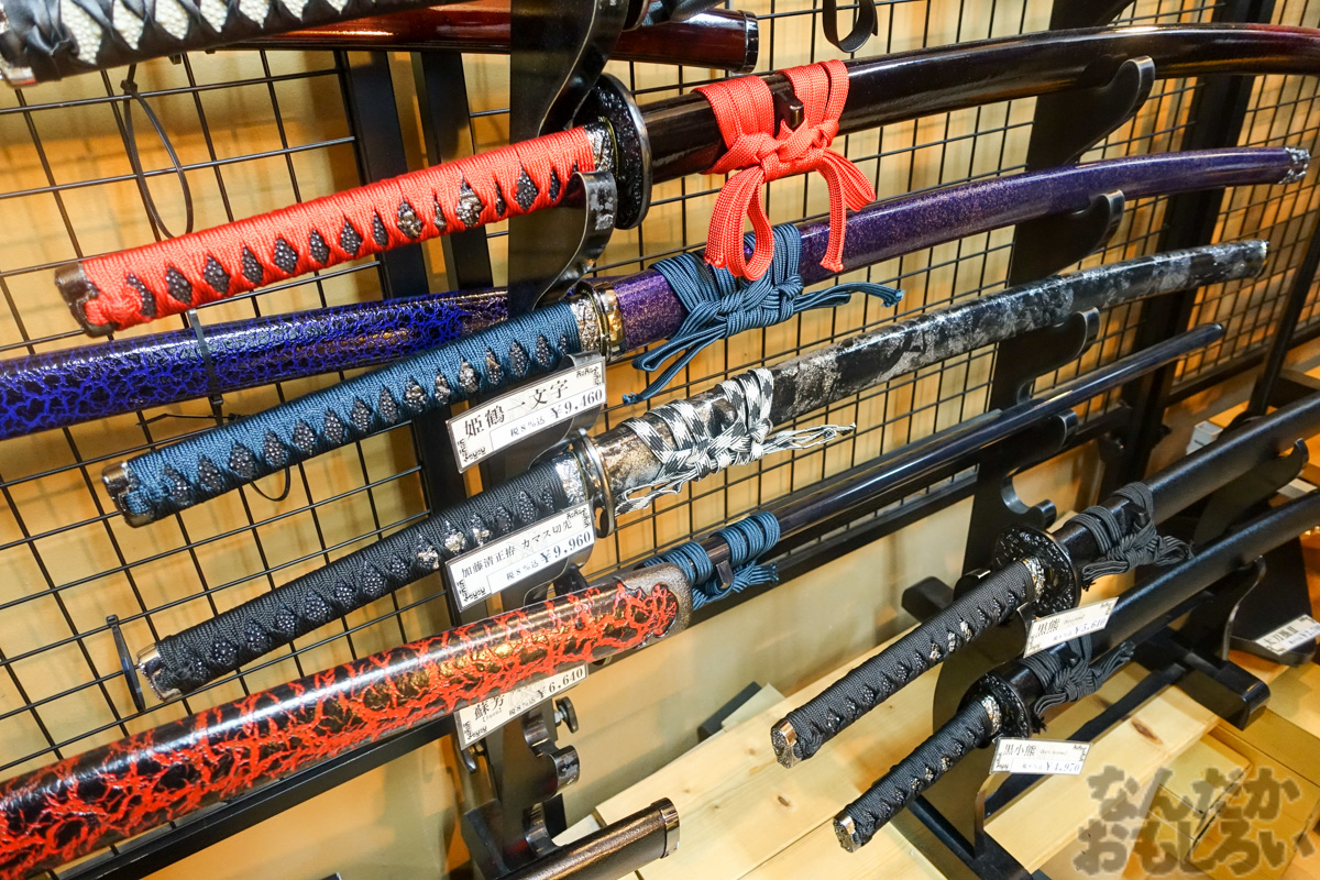 取材をした日には、「特・一期一振」「特・へし切長谷部」「特・歌仙兼定」「特・陸奥守吉行」「特・にっかり青江」といった美術刀が店頭に並んでいました。その前には「特・燭台切光忠」「特・同田貫正国」「特・加州清光」「特・大倶利伽羅」「特・和泉守兼定」などの美術刀も入荷されていたのですが、すでに完売していて、実際に見ることはできませんでした。