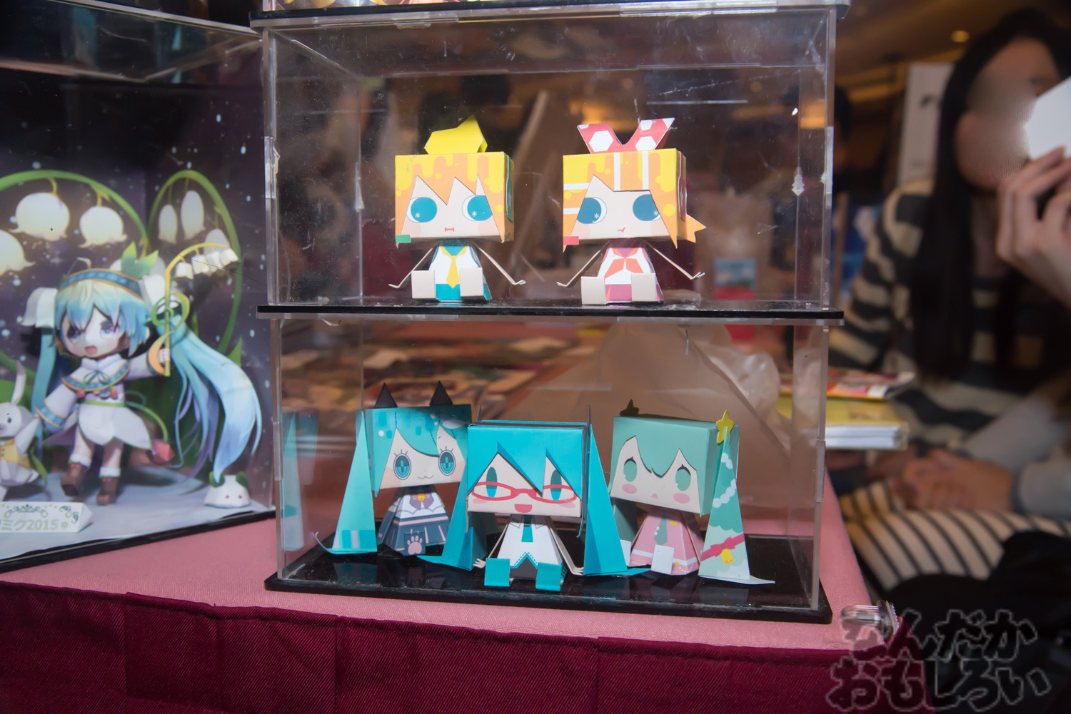 こちらでは、CWHK39に参加されていたサークル紙漫糖を紹介。紙漫糖はペーパークラフト(紙模型)に関する本の頒布や、ペーパークラフトの展示などをされていて、多くのCWHK39参加者が足を止めて見ていました。初音ミク、雪ミクがメインでしたが、「ラブライブ!」の登場キャラクター、南ことりの「ことり式雪だるま」衣装のペーパークラフトなどがすごく、速報でツイッターにて紹介したところ、結構反響が大きかったです。