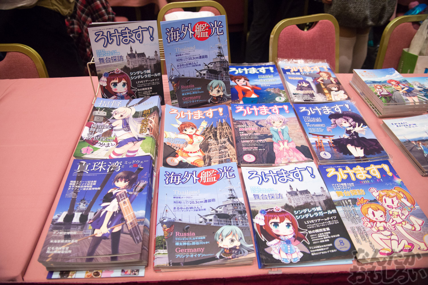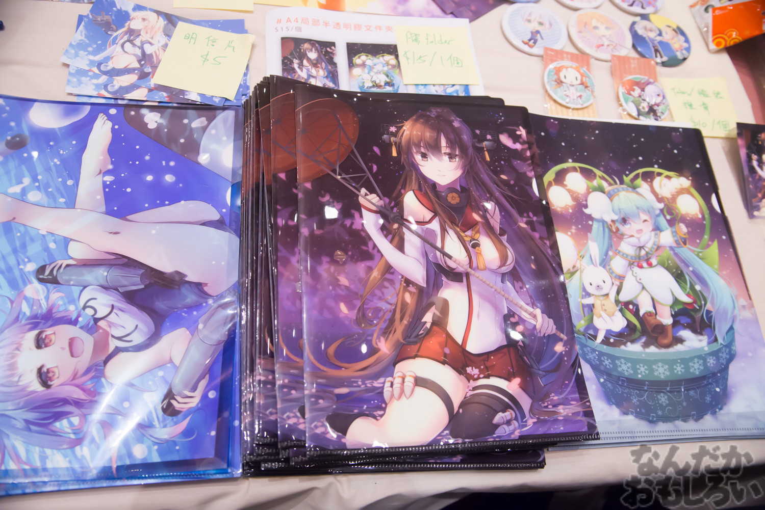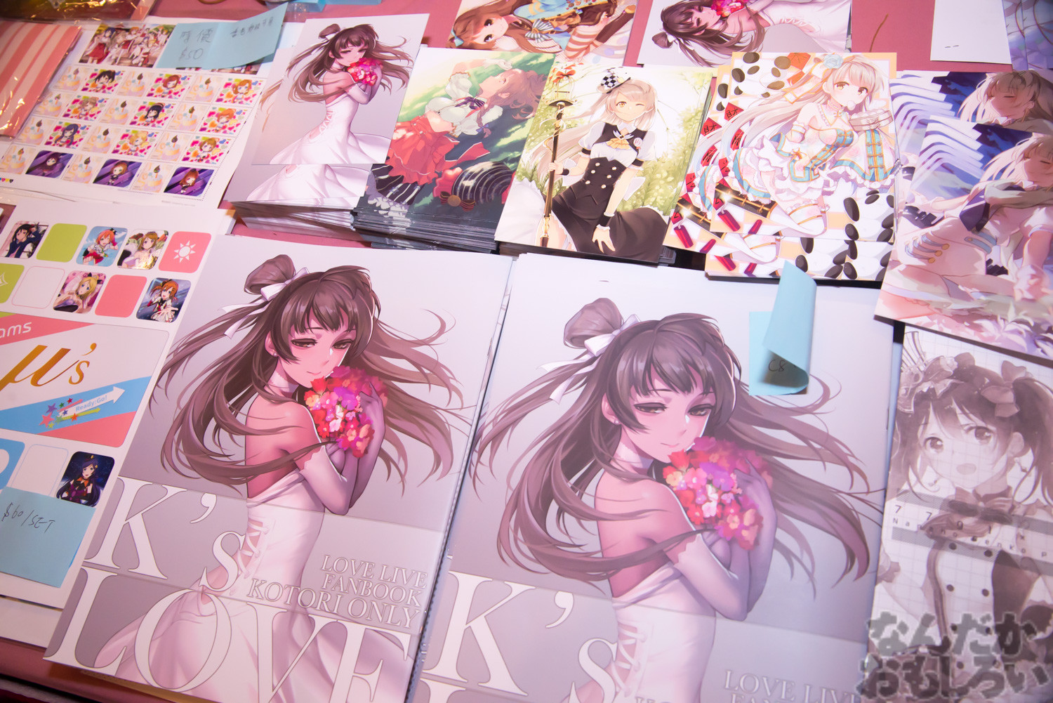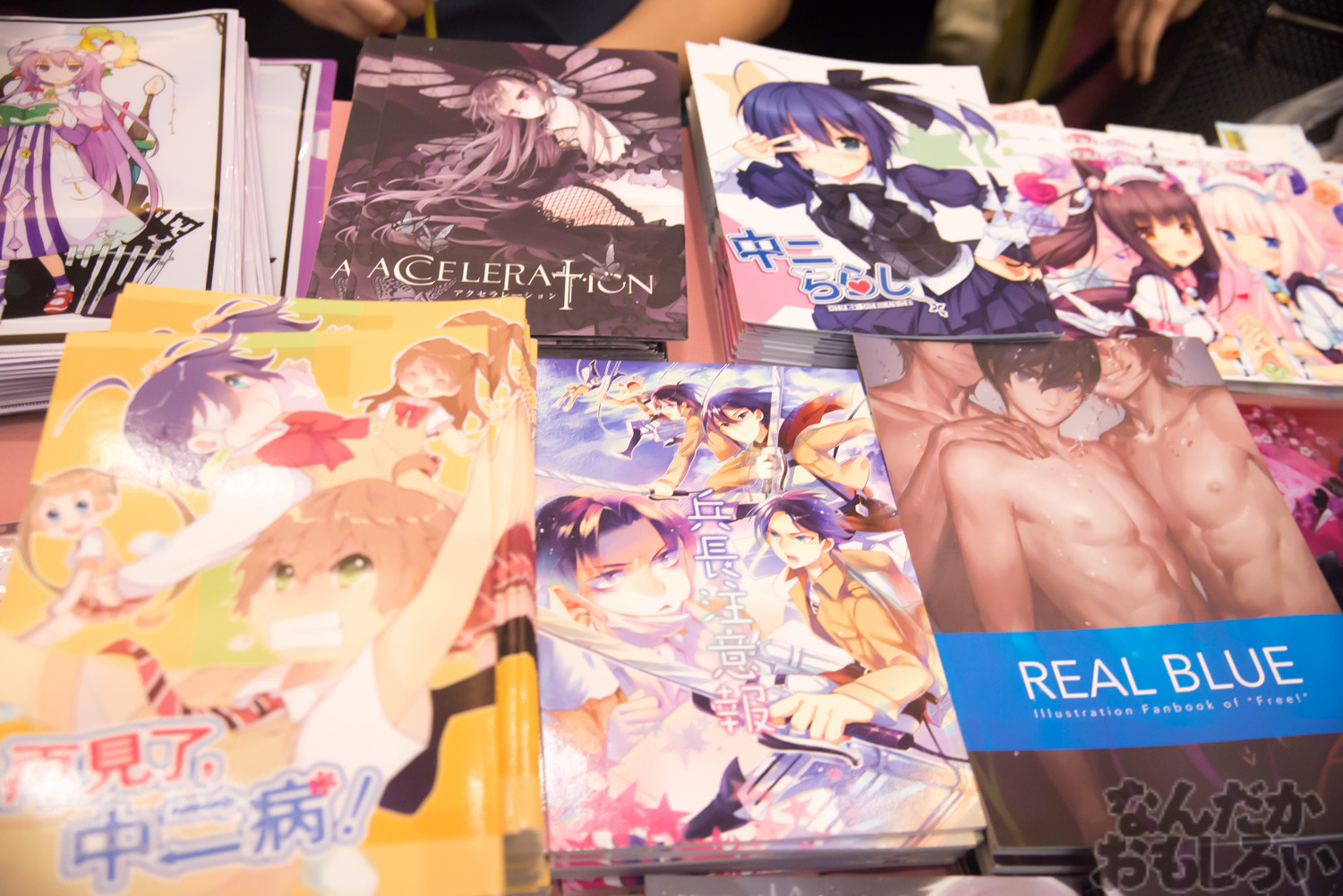 サークルのジャンルは圧倒的に「ラブライブ!」「艦これ」が多く、次いで「東方Project」などが多かった気がします。また女性向けジャンルでは「Free!」「ハイキュー!!」「進撃の巨人」「東京喰種」が人気で、早くも「刀剣乱舞」のグッズを出していたサークルもありました。