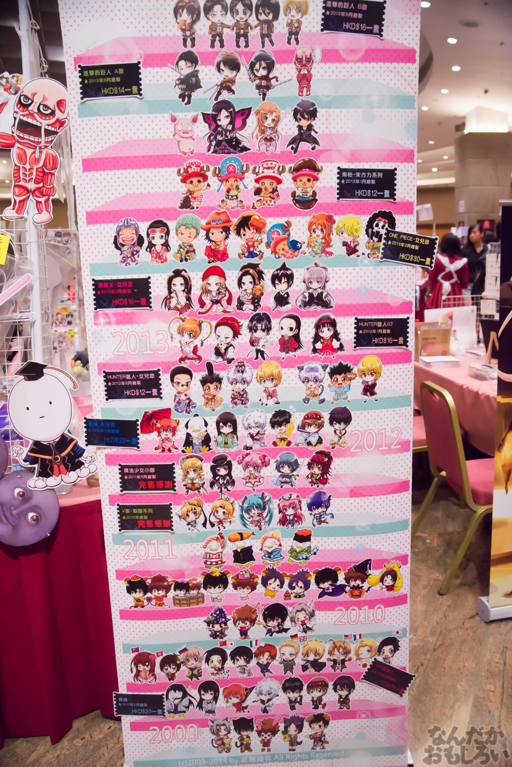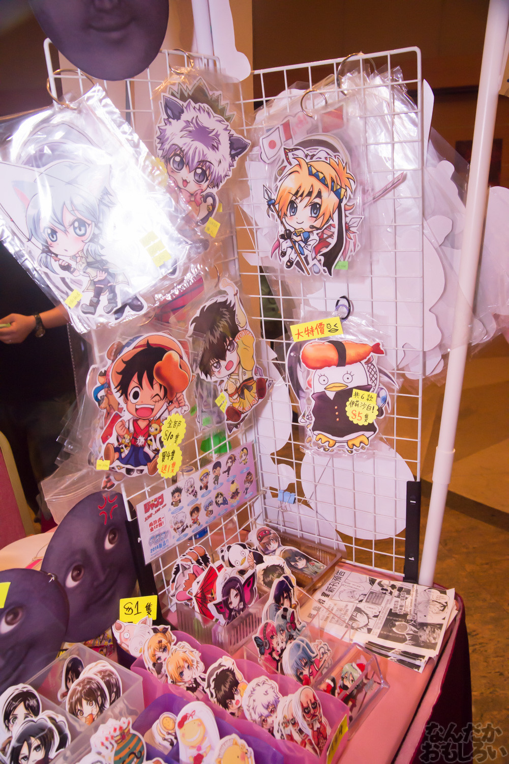 基本的には日本や台湾の同人イベントと同じ雰囲気なのですが、価格表示が元と香港ドルの2種類があること、同人誌とグッズ販売が半々くらい、開催時間が11時から19時と長丁場、駆け込む姿は見られない(台湾FFでは開場と同時に走る姿が見れます)、サークル列はあまりできない、買うよりも見て楽しむ人が多い(らしい)など、少し違う点もあったりします。