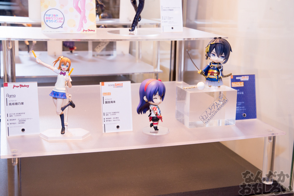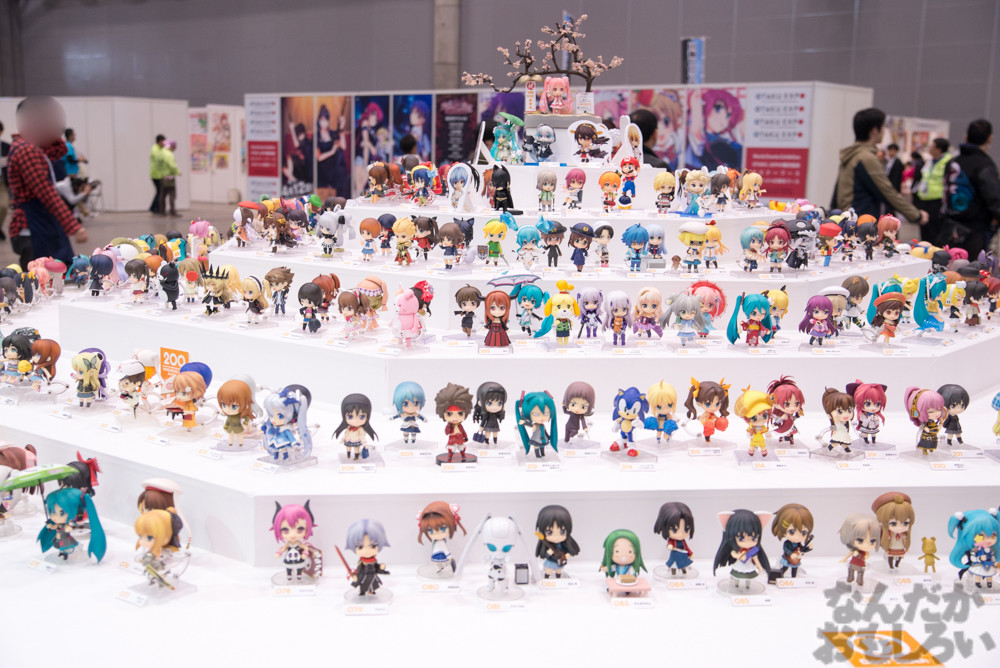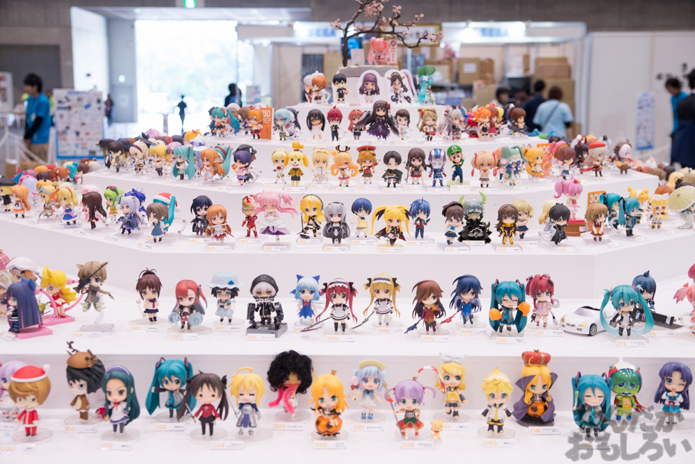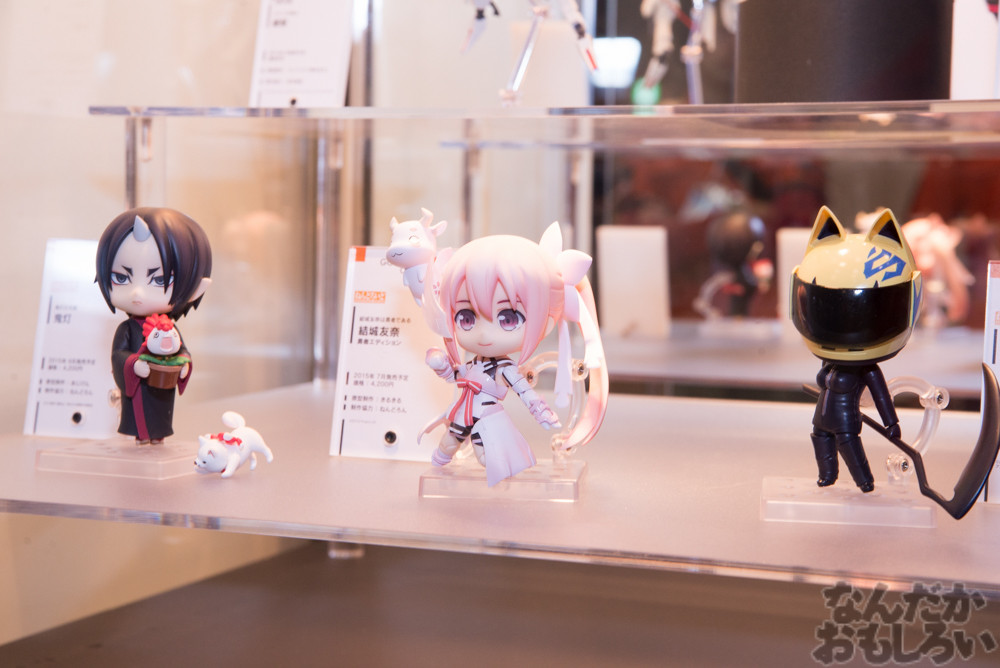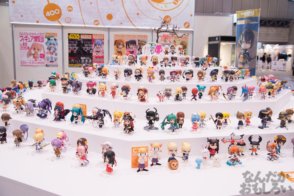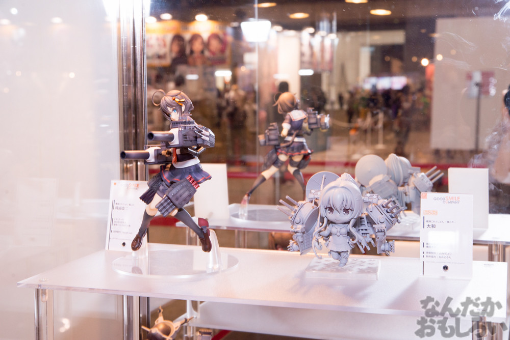 グッドスマイルカンパニーブースでは、過去に発売されたねんどろいどシリーズのフィギュアが大集合!円状に展示されていて、懐かしさと新しさを感じる展示となっていました。また、グッスマ新作フィギュア展示もあり、ねんどろいどを中心に「刀剣乱舞」「ラブライブ!」「艦これ」といった人気コンテンツのフィギュアが発表されていました。