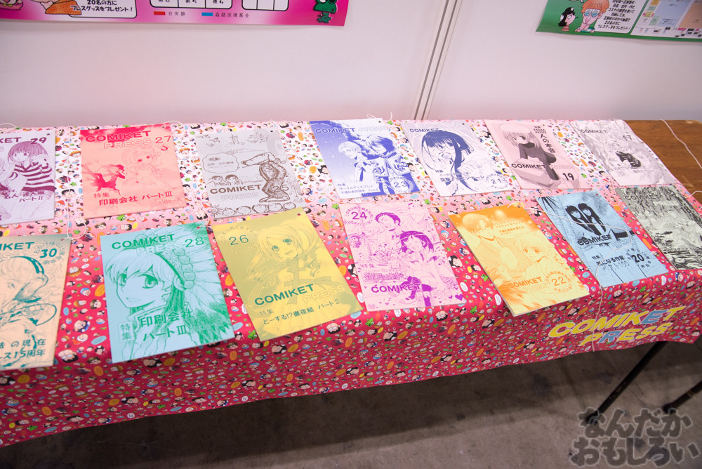 1975年にスタートした「コミックマーケット」。その40年の歴史を振り返ることができる「コミケット40周年ブース」が会場内に登場。今まで発行されたコミケカタログやROMの表紙、森林保護募金ポスター、企業ブースポスターなどが展示されていて、40年もの歴史を追うことができる貴重な体験ができます。