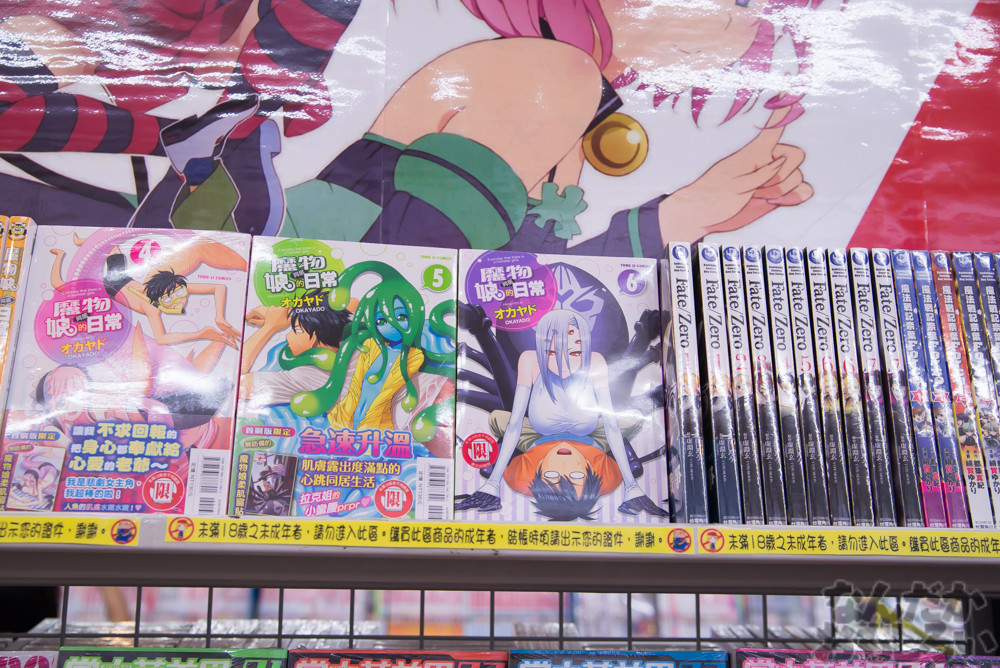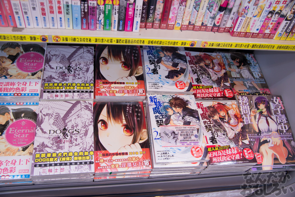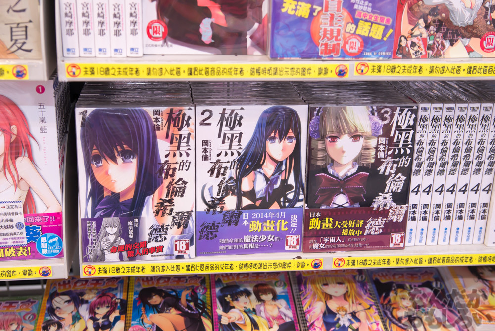 ただし漫画やライトノベルのほとんどは中国語版であることや、日本以上に法律が厳しいため、日本では一般向けの漫画や雑誌が台湾では「18禁」として扱われる場合も。