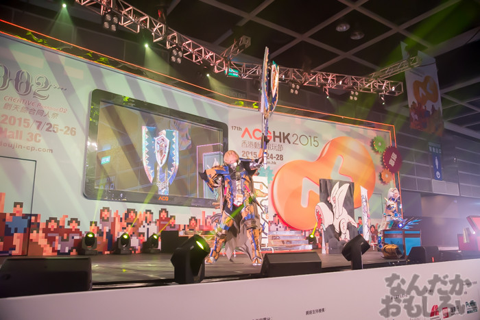 ACGHK2015では4日間コスプレパフォーマンス開催。こちらでは1日目の様子をフォトレポートでお届けします。1日目では、モンスターハンター、デジモンアドベンジャー、ラブライブ!など、様々な作品のパフォーマンスを実施。音と映像、そしてコスプレイヤーによる演技で、来場者を楽しませていました。