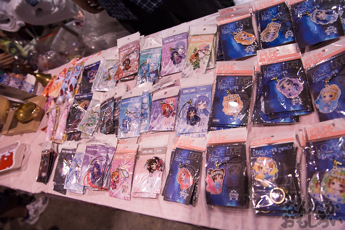 人気ジャンルは「ラブライブ!」。次いで「艦これ」など。女性向けも多数頒布されていたサークルもありました。また日本と比べると、本よりもグッズを頒布するサークルが多い印象。