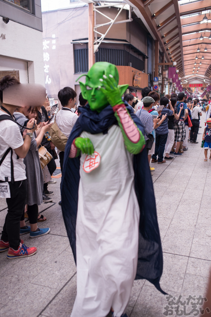 大須観音での撮影後は、各国代表のコスプレイヤーを先頭に、参加コスプレイヤーが大須商店街をパレード。非常に多くの参加者が見学し、そしてカメラやスマホ、タブレット端末を持ち撮影する姿を多くみかけました。参加コスプレイヤーは各国代表以外にも多くの外国人レイヤーが参加されていて、ジャンプ作品や映画作品、「ラブライブ!」のコスプレイヤーも非常に多くいらっしゃいました。