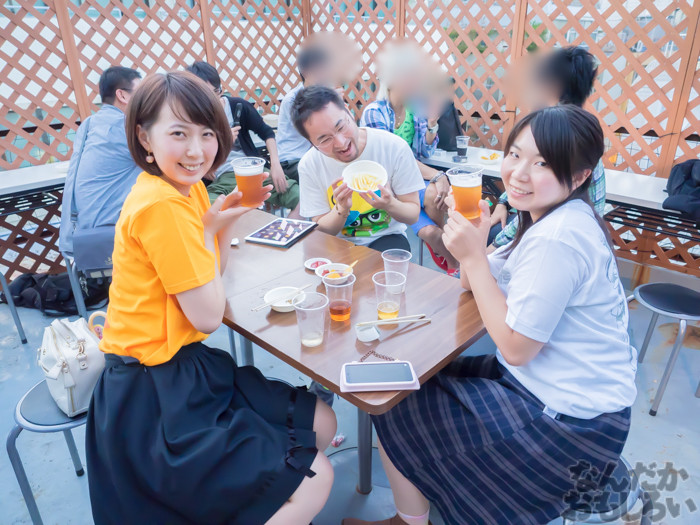 一方14時からスタートしたビアガーデンは夕方になると多くの参加者が参加。ライトアップをされていい雰囲気に。昼や夕方ごろにビアガーデンにいた方は、そのまま「酒っと」会場のほうへ行き同人誌を見たり購入したり、「酒っと」参加者はビアガーデンへ行きゆっくりとお酒を飲んでいらっしゃいました。