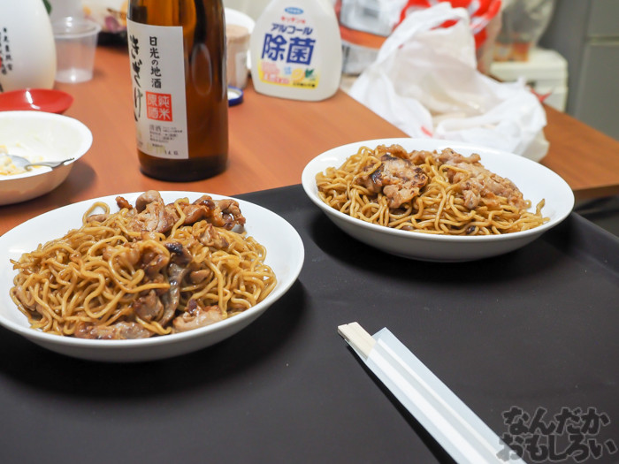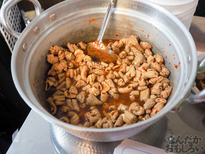 1部は22時に終了し、2部が24時からスタート。ほとんどのサークルが入れ替わり雰囲気はより飲み屋に近づく…と予想したのですが、2部ではアルコールよりも食べ物を振舞うサークルが多かった印象。ちょっとピリ辛ですっぱいモツ煮「酢モツ」、