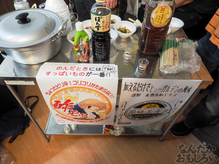 BTO秋葉原酒類研究部ではできたて酢モツ、加えるだけでヒ○ーガルデン風味になる麦酒添加エキスを振舞っていました。