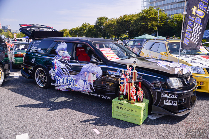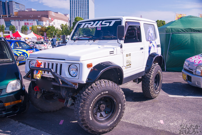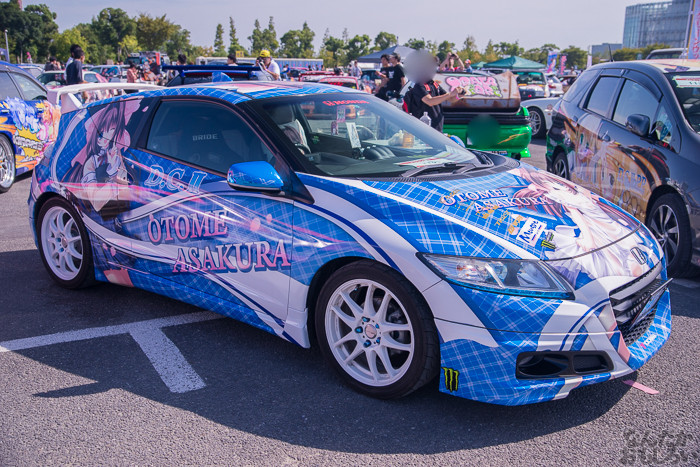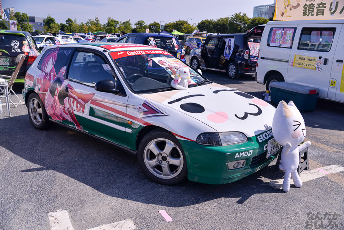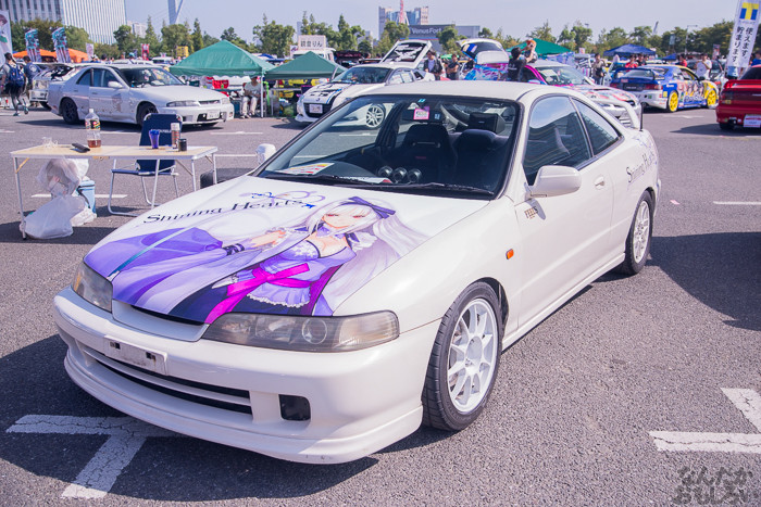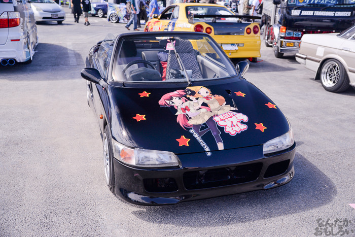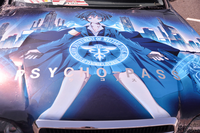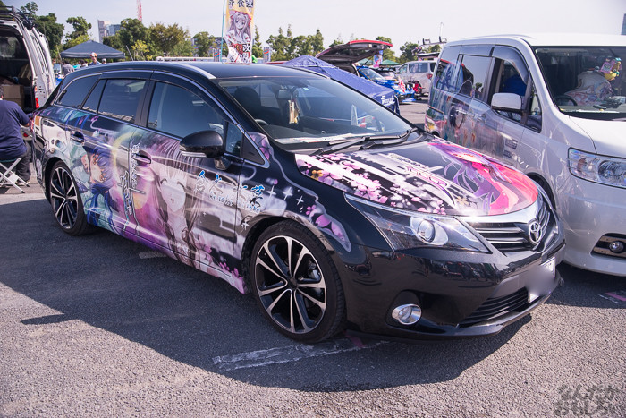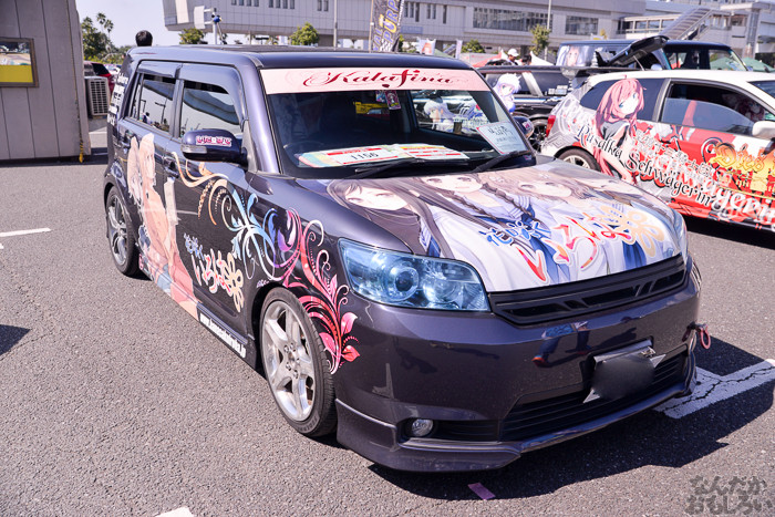 その1では、ニトロプラス原作「装甲悪鬼村正」痛車や、TYPE-MOON原作「月姫」痛車、「ヤマノススメ」スズキ痛車、ほか「ダンまち」ヘスティア様&リリ、「サイコパス」常守、「のんのんびより」ほたるん、「きんいろモザイク」カレンデースなどなど。