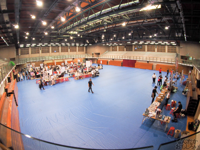 会場1時間前の様子 半分が同人誌エリア、半分がコスプレエリアに