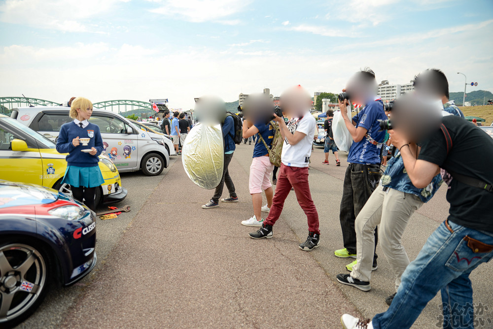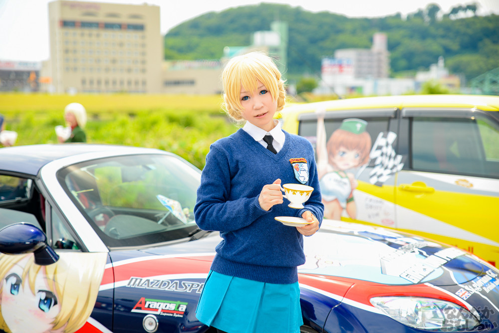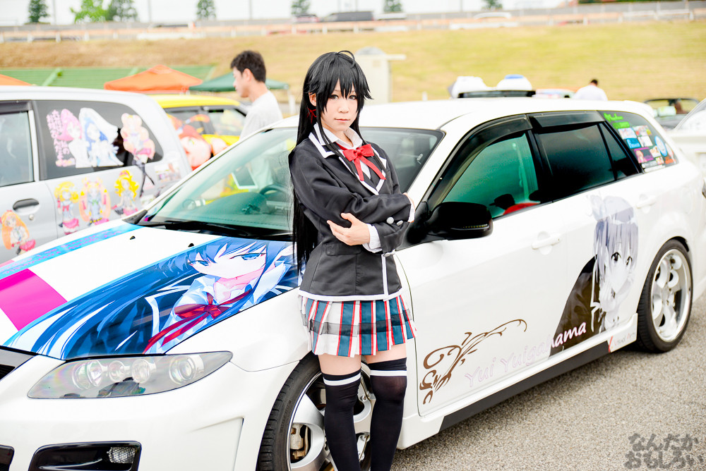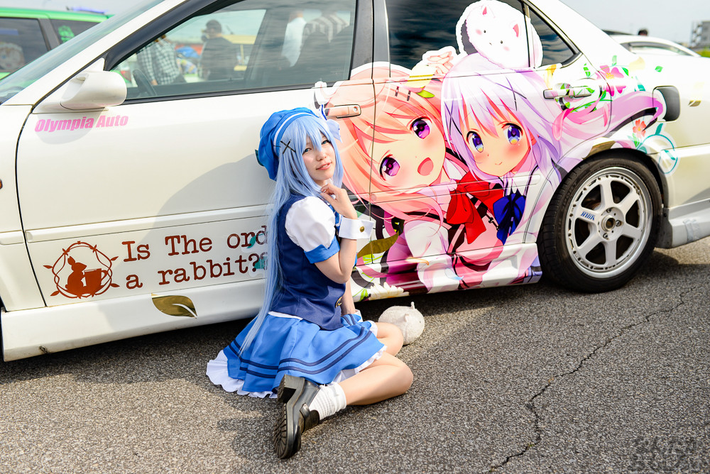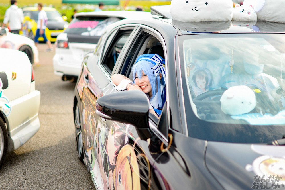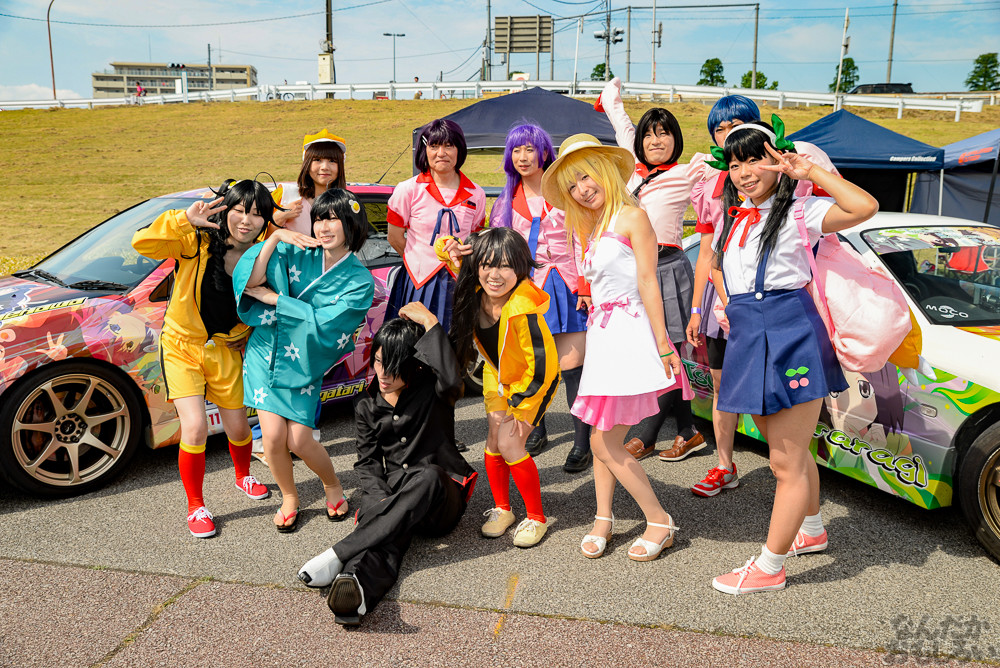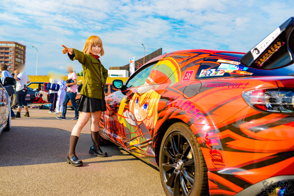 コスプレ撮影をまったり楽しめるのが痛車イベントの醍醐味で、「足利ひめたま痛車祭」は痛車イベントの中でも非常に和気藹々とした雰囲気でコスプレイヤーやカメラマンともに楽しめるイベントだと思います。そんな「足利ひめたま痛車祭」ですが、今回は学園物体感コスプレイベント「空想学園祭」が合同で行われたこともあって、過去最高の盛り上がりとなりました。