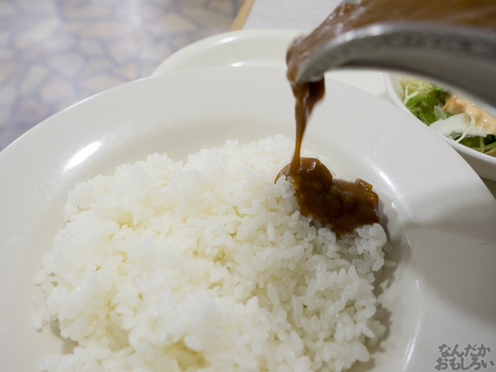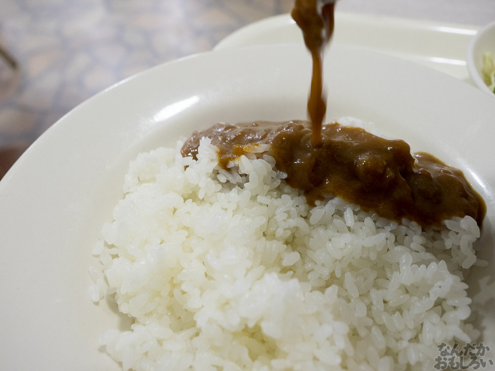 というわけで呼符やってみましたけど。はぁ…。ま、まあ今回の目的は海軍カレーですから!というわけで、海軍カレー食べてきましたよ!「さいか屋レストラン スワン」。駅からそこそこ近くて、それほど混んでいないお店を選んだんですけど、カレー屋というよりも、地元密着型のレストランという雰囲気でした。