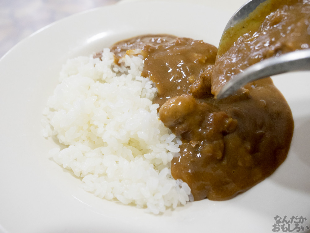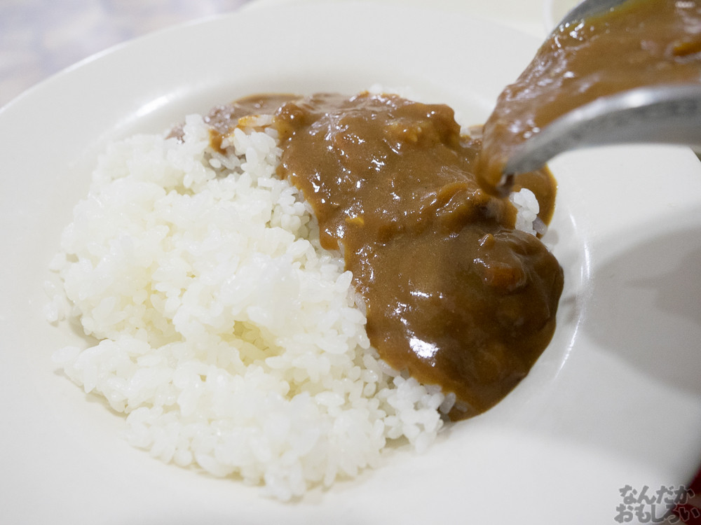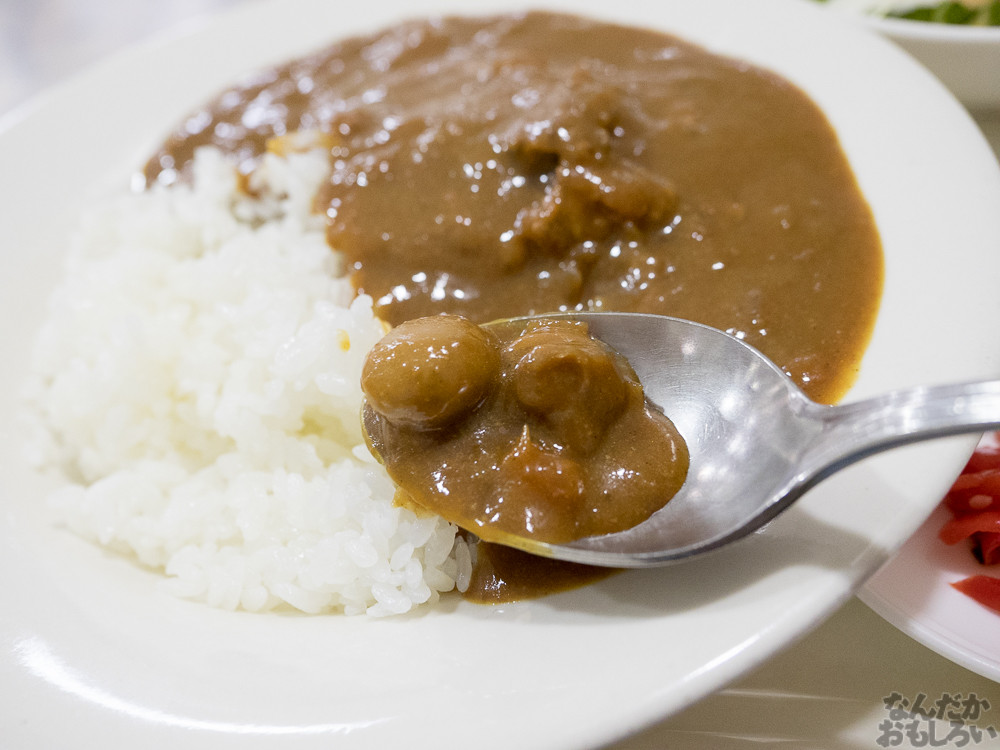 昔、親に作ってもらったカレー…とは全然味が違うんですけど、どこか懐かしさを感じる、スパイスの効いたカレーです。海軍のみなさんはこんなうまいカレーを食べてるのか…とか思うと、うらやましさ感じますね。