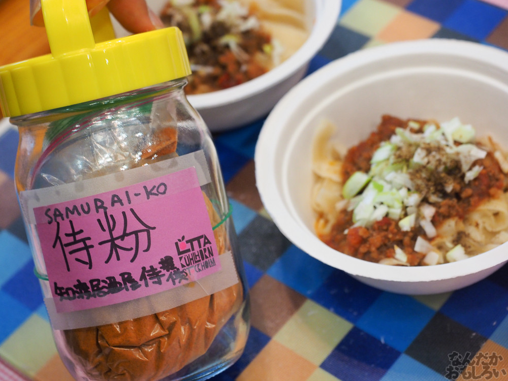 過去からの「グルコミ」参加者にはお馴染みの料理振る舞い。イベント主催からはグルコミ恒例となった生ハムの原木の振る舞いから、今回ついに白米販売所が登場!100キロを超える大量のご飯が用意されていて、まさに食いしん坊にはたまらないサービスです。さらにある意味厄介なことに、ただ白米を振る舞うのではなく、味付けされた脂身「カロリー」や、鰹節をまぶした「ネコマンマ」、そして「角煮」をご飯の上に乗せるメニューも用意。さらに800gものご飯を用意したご飯山盛りサービス「昔話」もあり、イベントが終了するまでの間、常に行列ができていました。