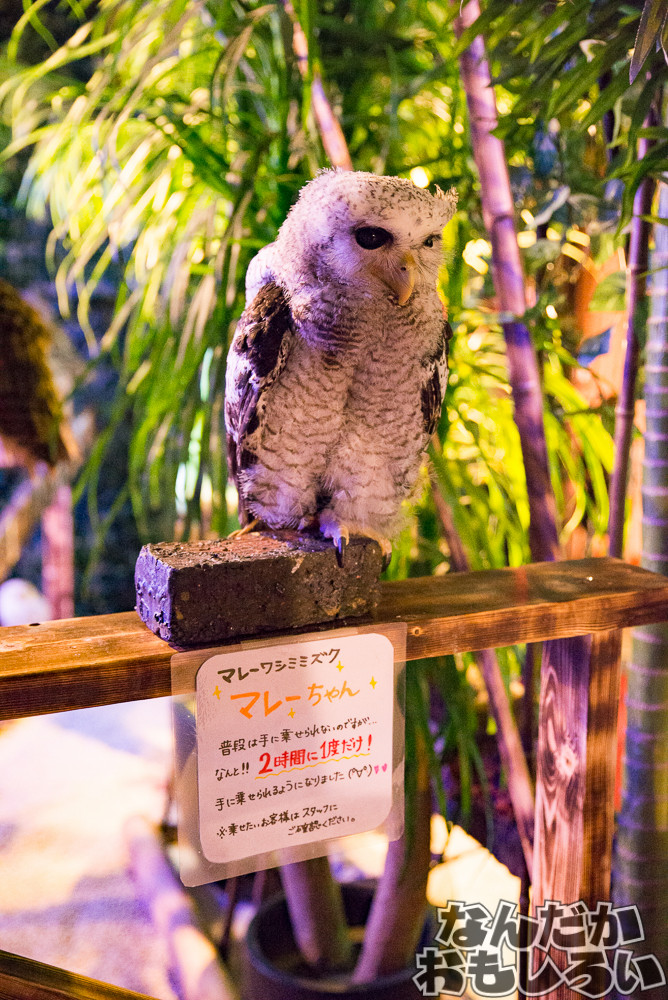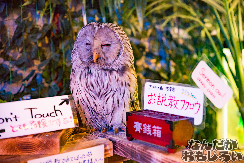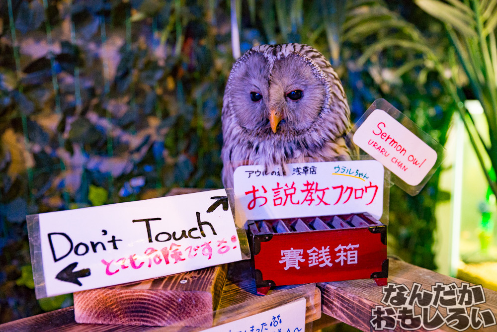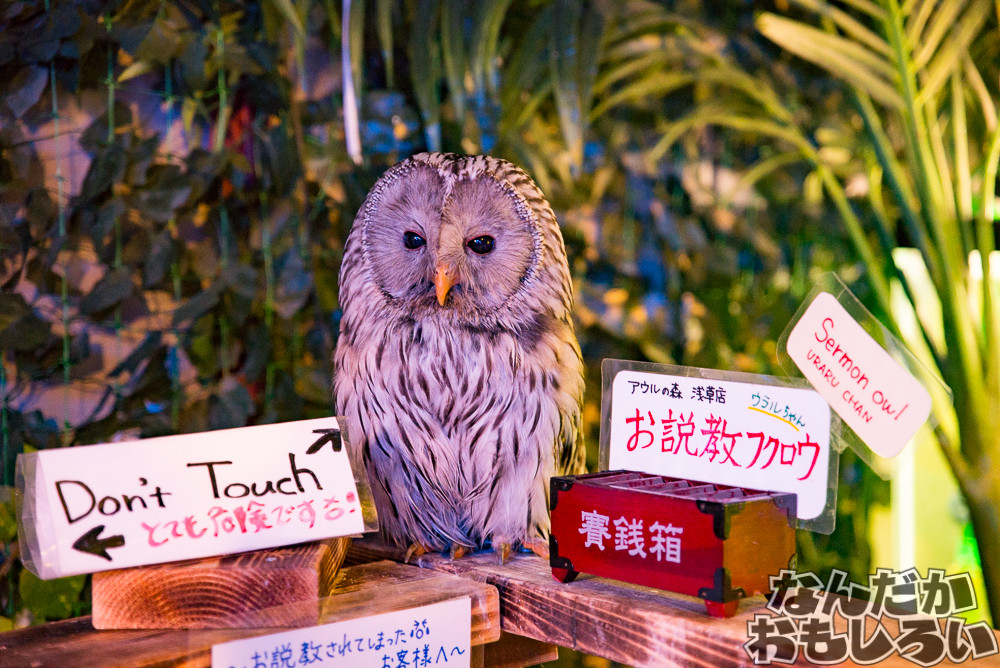 特集 TOP 旅行 # 秋葉原で話題のフクロウカフェ『アウルの森』2号店が浅草にオープン!キュートなフクロウちゃんたちとたっぷりと触れ合ってきた 2016年07月01日 17:30 2015年に秋葉原にオープンし、平日でも予約を取らないと入店できないほど人気のフクロウカフェ「アウルの森 秋葉原店(以下、秋葉原店)」。その2号店が、東京・浅草 新仲見世通りに6月上旬にオープンしました。まだオープンしたばかりの「アウルの森 浅草 新仲見世通り店(以下、浅草店)」を取材してきましたので、写真たっぷりでその魅力をお届けします。 <関連記事>時間制限&予約必要なしのフクロウカフェ『アウルの森』が秋葉原にオープン!早速フクロウたちと触れ合ってきた 浅草の中心にオープンした「アウルの森 浅草 新仲見世通り店」は広々&まったり空間を提供 「アウルの森 浅草 新仲見世通り店」は、浅草駅より徒歩5分の距離にオープン。秋葉原店と同じでジャングルのような森の空間で、世界最大種から希少種まで様々なふくろうたちと触れ合え、またフクロウを購入することもできます。 雷門近く、新仲見世商店街にオープンしました ”たびびと酒場の跡”がコンセプトの秋葉原店ですが、浅草店では”ぼうけんしゃのキャンプ場”がテーマとなっていて、広々とした空間でフクロウたちとたっぷりと触れ合えるのが特徴です。また小型のフクロウが中心の秋葉原店と違い、中~大型のフクロウが多く、マレーワシミミズクやオオフクロウといった珍しいフクロウも含めて20羽ものフクロウたちが入店者をお出迎えしてくれます。 グッズ販売コーナーもあり 珍しいマレーワシミミズク「マレーちゃん」 入園料は1時間890円(子どもは1時間540円)、ソフトドリンク1杯は入園料に含まれていて、追加の場合は100円となります。フクロウの撮影は自由で、フクロウを手や肩に乗せることも可能。フクロウと一緒に写真撮影もできます。 フクロウを乗せたい場合はスタッフが対応 スタッフに話を聞いたところ、6月上旬にオープンして3週間が経ち、秋葉原店の常連の方や浅草周辺に住む地元の方、そして浅草に観光で来ている外国の方たちが多く来店しているとのこと。そして春~夏にかけてのシーズンは赤ちゃんフクロウが多く、ふわふわとしたフクロウに触れ合える貴重な期間とのことです。 秋葉原店に引き続き浅草店も取材をさせていただきましたが、小型のフクロウが多かった秋葉原店と違い、浅草店は中~大型のフクロウが多く、非常に迫力がありました。でも、大きいからといって怖いという印象はなく、大人しい子が多くて、どの子からもあどけなさ、愛くるしさを強く感じました。 浅草に新たにオープンしたフクロウカフェ「アウルの森」、浅草へ行った際には是非とも足を運んでみてはいかがでしょうか? フクロウ写真をたっぷりとお届け! 中の人のつぶやきはこちら! Follow @nandakaomo 関連リンク フクロウカフェ アウルの森 秋葉原 話題のニュース「なんだかおもしろい」記事紹介 この記事をツイートする 本記事はアフィリエイトプログラムによる収益を得ている場合がございます カテゴリ別リンク 「旅行」カテゴリ