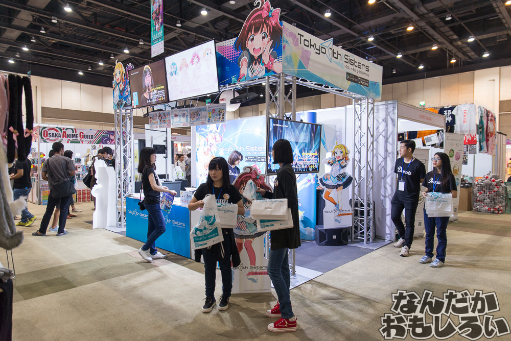 そして現在TVアニメ放送中の「ラブライブ!サンシャイン!!」ではAqours9人のキャラパネルが展示され、大規模な物販も用意され非常に人気でした。ほか、アイドル作品では「Tokyo 7th シスターズ」ブースが出展していましたね。