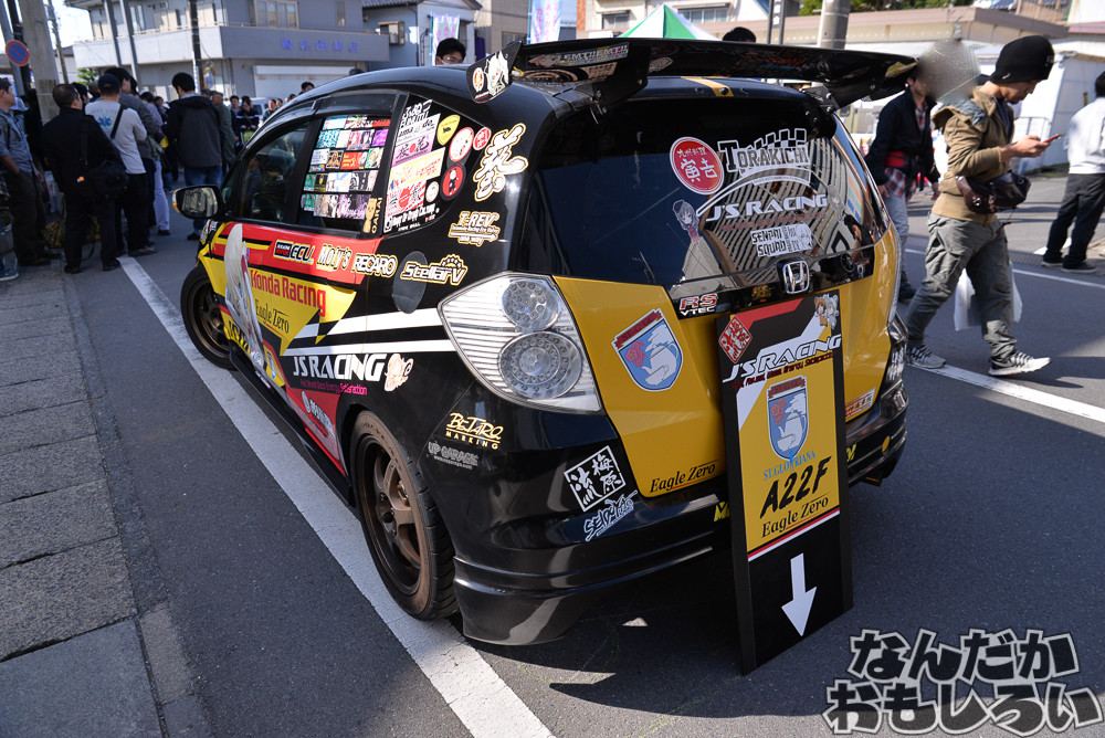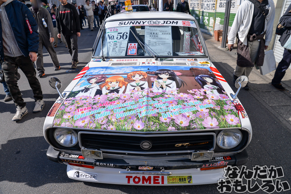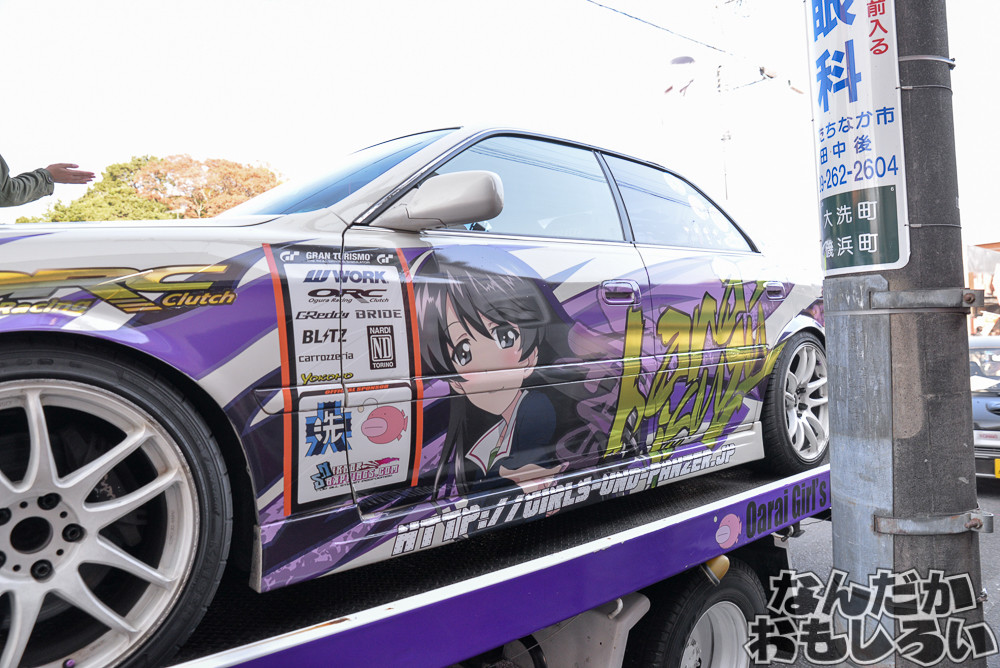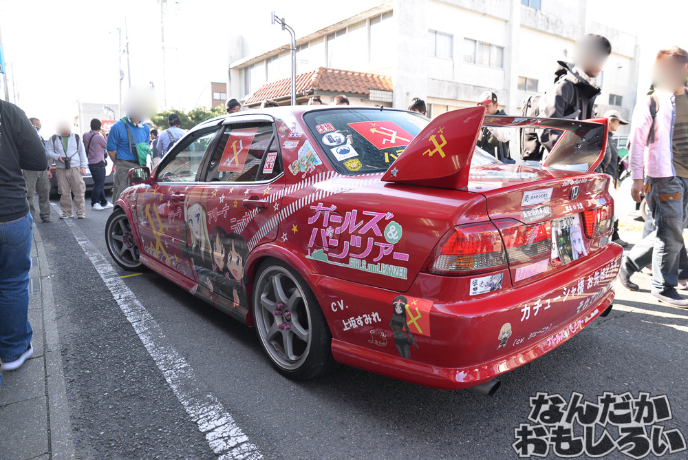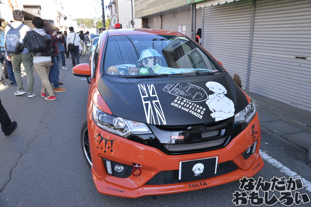 過去最大となる80台以上が集結した「第20回大洗あんこう祭」。ガルパンの舞台にもなった商店街が歩行者天国となって、近隣駐車場も含めて80台以上のガルパン痛車と戦車模型が展示されていました。コスプレイヤーとの合わせ撮影なども人気でしたね。