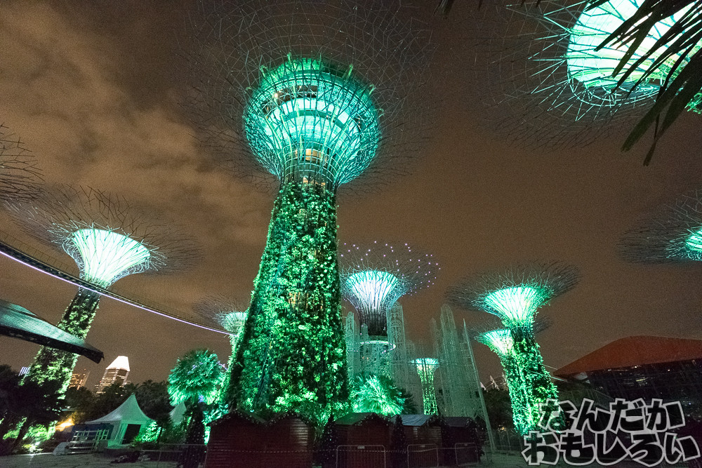 ぶっちゃけガチャすることを言い訳に夜景撮りしてる自分なんですが、ここは幻想的というか、面妖な世界観を感じさせるところです。植物園自体が結構大きいので大変ですが、光の色が変わる人口の木は、見ていると引き込まれます。