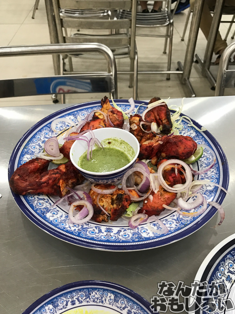 注文したのは…何か分かりません。「シーフードナシゴレン plesase」って伝えたら「No,〜〜〜」と言われて「Oh,...chicken!」と伝えたら、辛い味付けしたチキンの揚げ物と、ロティ?(無発酵パンをカレーにつけて食べる料理)が出てきました。チキンのナシゴレンが食べたかったんだけど…でもまあおいしかったのでいいです。