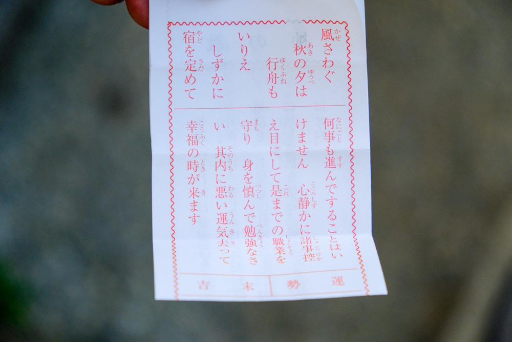 そんな命中させてくれる皆中稲荷神社で、自分は山の翁を命中させます!…でもまずは、おみくじをやりましょう。
