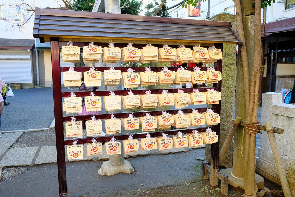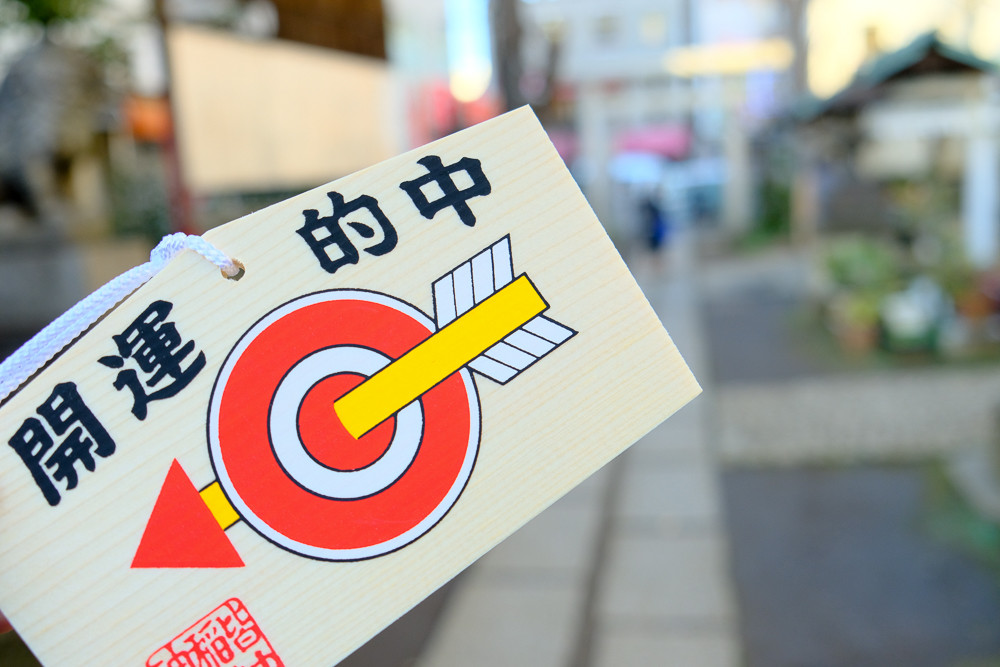 「開運・命中」と書かれた絵馬にその想いが書かれ、多く奉納されています。多くがライブ・コンサートのチケットの当選を願う絵馬が多かったですね。