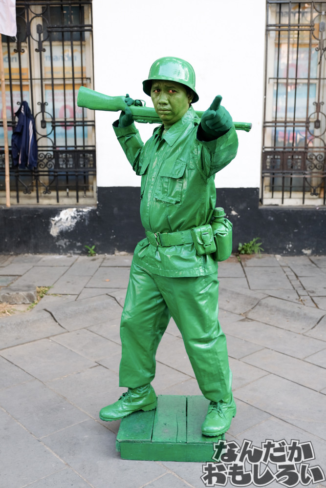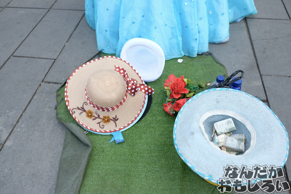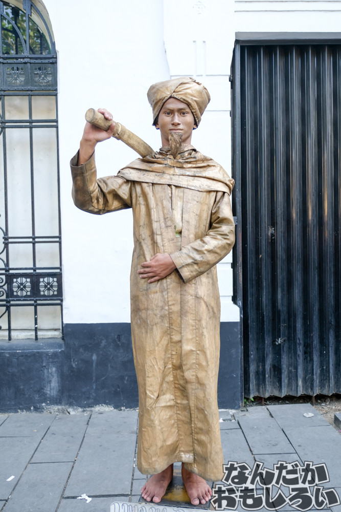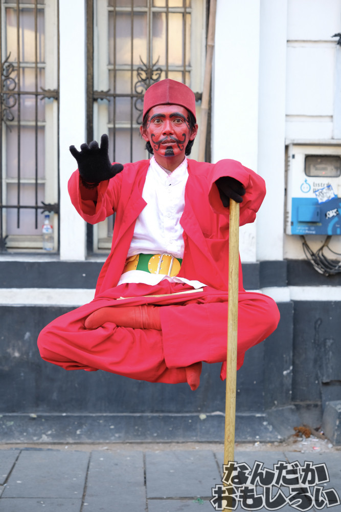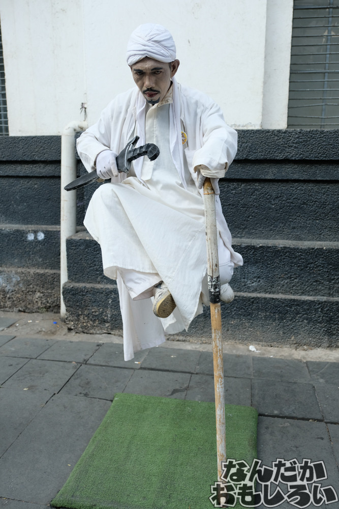 そんなコタ地区の通路には、大道芸人が数多く来ています。ドレスを来た綺羅びやかな女性に、全身にペイントを施した兵隊、民族衣装と思われる迫力ある衣装に、さらには空中浮遊のパフォーマンスをする人も。数えた人だけでも50人以上はいました。さながらインドネシアの文化を感じられるコスプレイヤーです。
