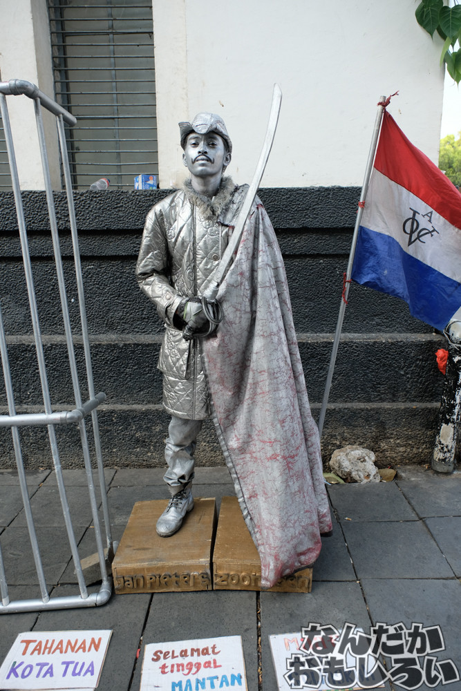インドネシア・ジャカルタのイベントに行きつつ、その合間に立ち寄ったジャカルタの観光地である旧市街・コタ地区。ジャカルタは観光地が少ないという話を事前に聞いていたのですが、ここはコスプレやポートレート撮影が好きな人にはたまらない、たくさんの大道芸人の撮影スポットとなっていました。
