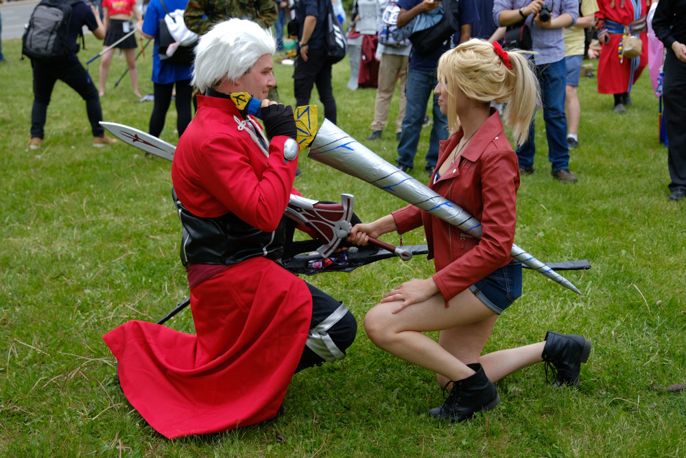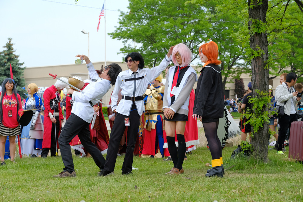 アニメノーツでは、キレイな芝生の広場で、時間ごとに作品コスプレ合わせを開催。2日目と3日目の正午に、Fateシリーズのコスプレイヤーを集めて撮影大会が行われました。