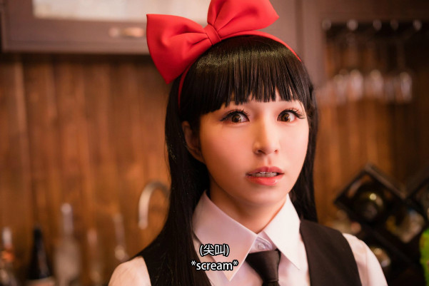 バー「Little Song」のバーテンダーとしてスレンダーで美人な詩子ですが、実は非常に残念な人。そんな詩子に翻弄される瞳の様子を、コスプレ写真で再現しています。アニメでは第3話「ホームレス生活入門編」に描かれている部分ですね。