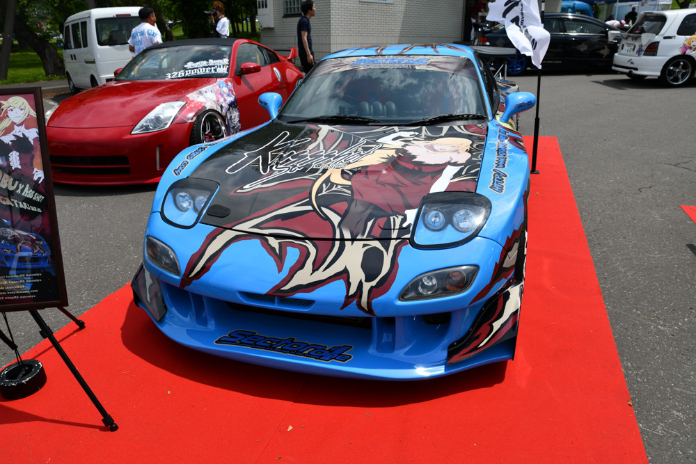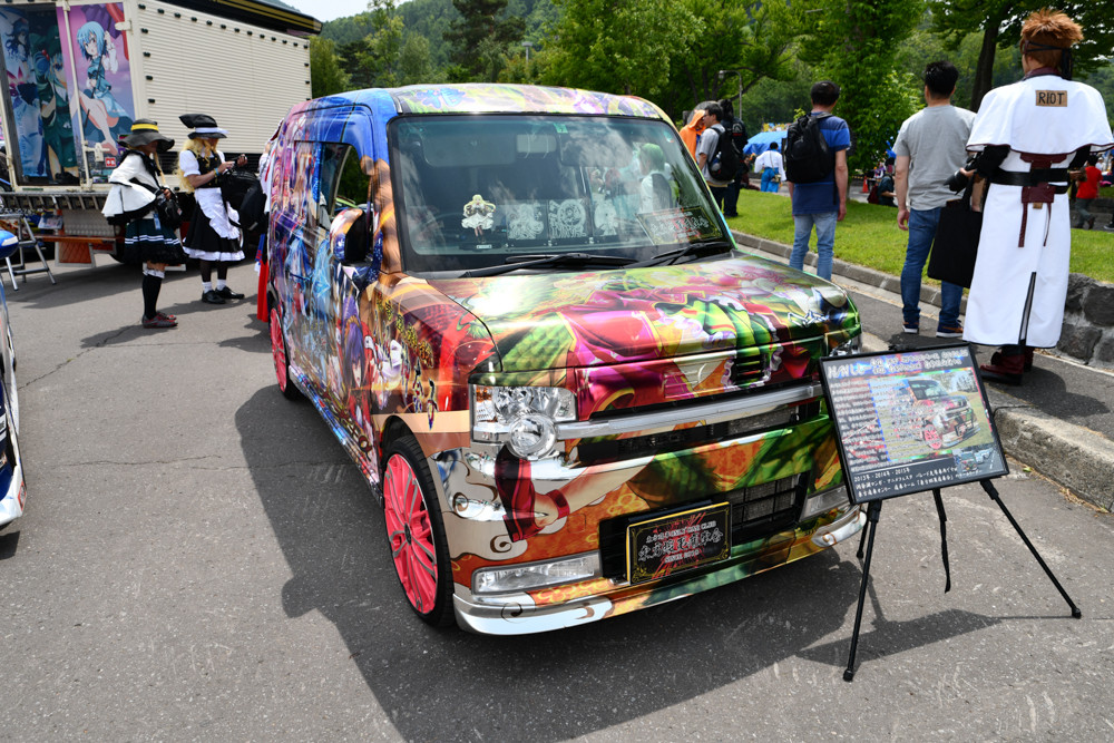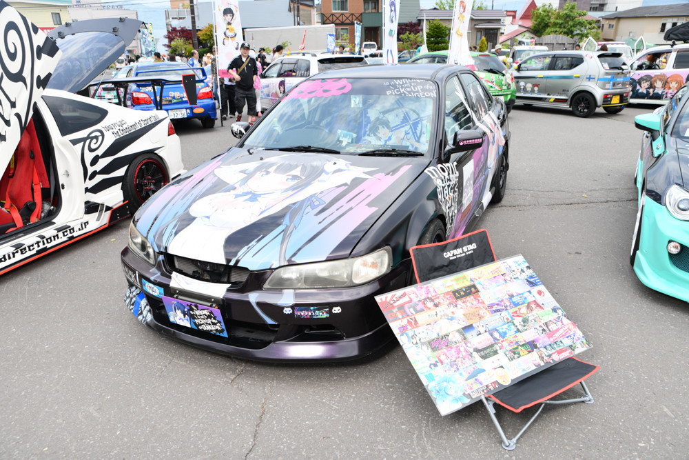 TMAFでは、北海道の痛車が数多く展示。台数は100台近くあって、道内だけでなく日本のイベントで見ても大型規模となる台数が集結していました。