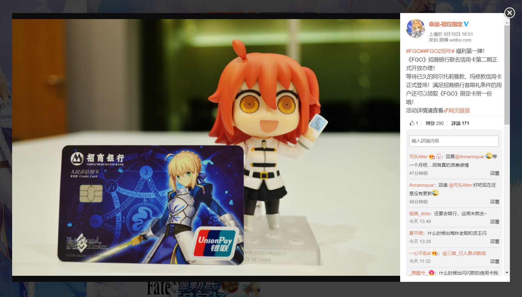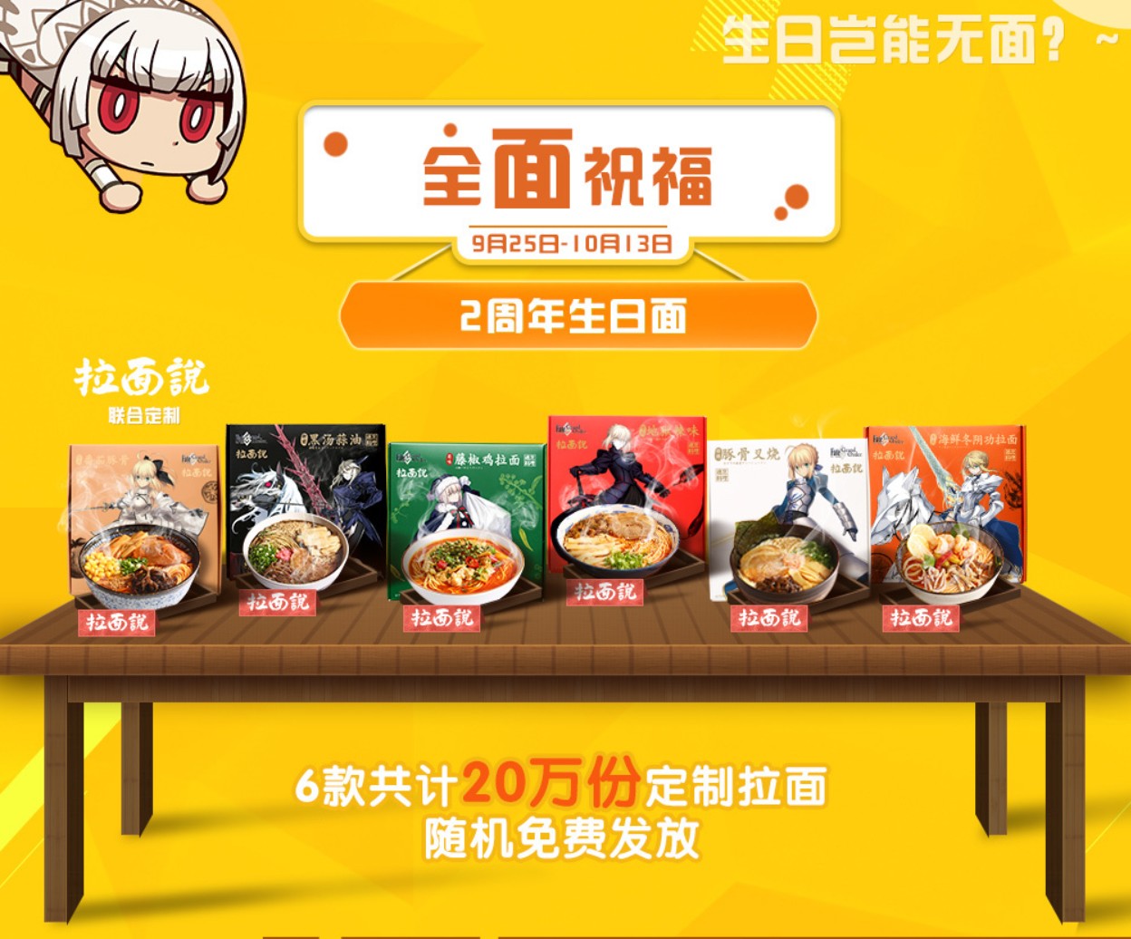 【追記あり】中国語版のFGOが2周年!クレジットカードや月餅、アルトリア麺などオリジナルな企画を実施