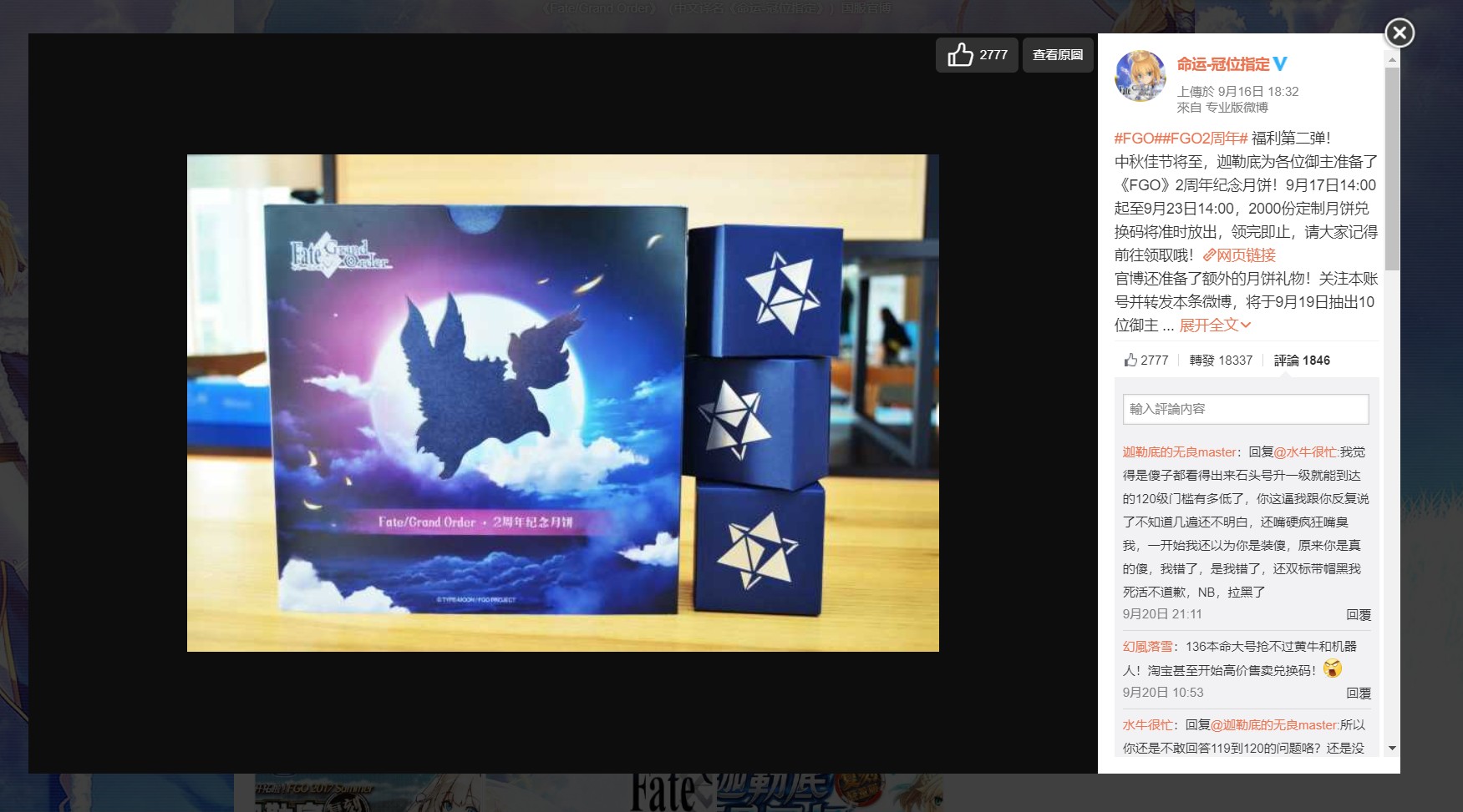 weiboにて、月餅のジャケットが発表されました。ジャケットは付きをバックにしたフォウくんデザインで、さらに聖晶石の箱も用意されています。