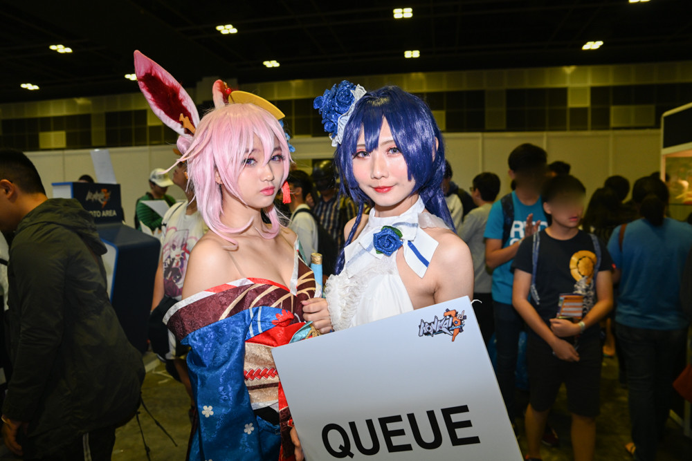 中国のmiHoYo開発ゲーム「崩壊3rd」のブースでは物販に行列ができていて、「崩壊3rd」のコスプレコンパニオンが整理をされていました。