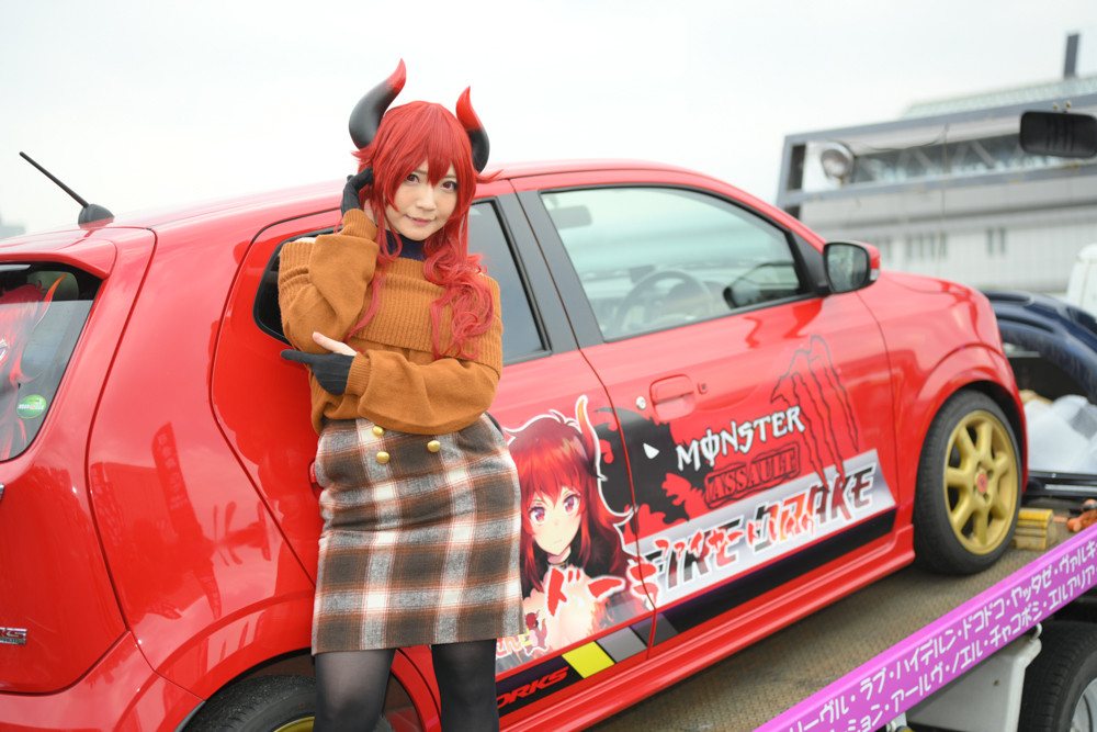 やや天候が悪いと0予報の出ていたイベントではありますが、ギリギリのラインで雨が降ることはなく、「痛車天国」としては結構な当たり日になったかと思います。そんな中、様々なコスプレイヤーさんたちが参加し、痛車とともに撮影を楽しんでおられました。