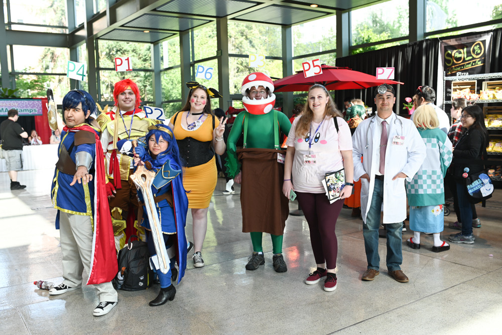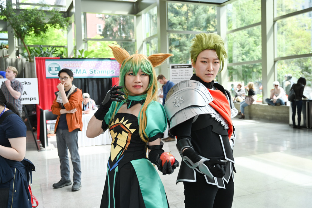 サクラコン1日目は、あいにくのビミョーな雨。なので野外でのコスプレは楽しめませんでした…が、それでもサクラコン会場となるワシントン州会議場は大きく、大きな出展ブースそろう展示エリアから広々とした廊下やコンベンションエリアなど、会場内でコスプレを楽しむ方が多かったです。