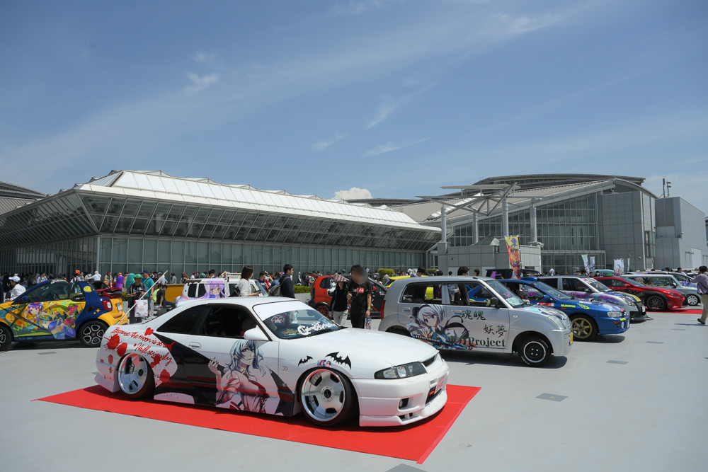 屋上駐車場では、痛車及びコスプレイヤーさんの撮影エリアとなっていました。通常であれば東館のトラックヤードで開催しているので、逆三角形の建物をバックにした、今までとは違うロケーションが楽しめる場所だったのではないかと思います。