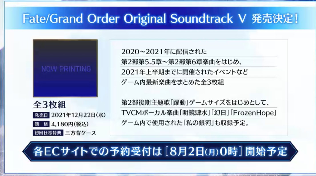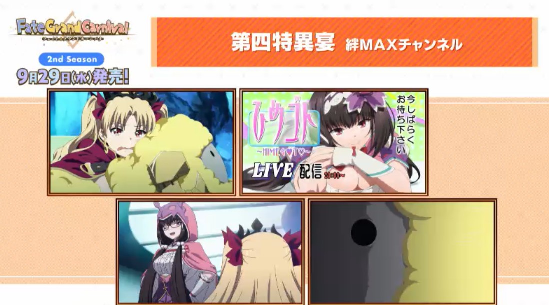 ゲーム以外の情報を発信。8月26日発売の「月姫 -A piece of blue glass moon-」、9月30日発売の「MELTY BLOOD: TYPE LUMINA」に、ゲーム「衛宮さんちの今日のごはん」ランサーシナリオの追加パック情報、コミカライズや「Fate/Grand Carnival」、映画「終局特異点」情報などを発表しました。