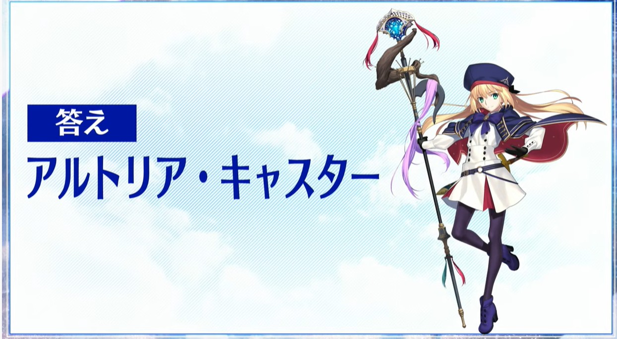 最後は島崎信長さんが回答。難解なヒントながらも、アルトリア・キャスターと回答。全問正解で、聖晶石30個がプレゼントとなりました。