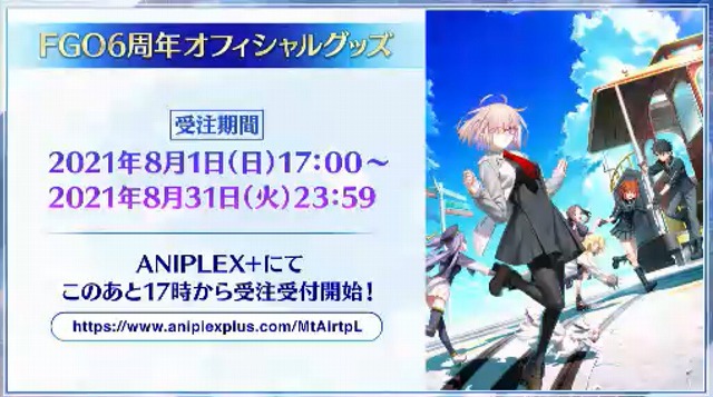 FGO6周年オフィシャルグッズは8月1日17時~8月31日まで、ANIPLEX+受注開始です。