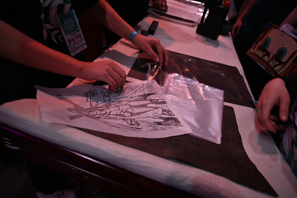 中国の伝統工芸コーナーもあり。絵画や版画、飴細工に切り絵などを展示、さらには現地で制作する様子を楽しむことができます。中国の伝統とFGOが融合したコーナーとなっていました。