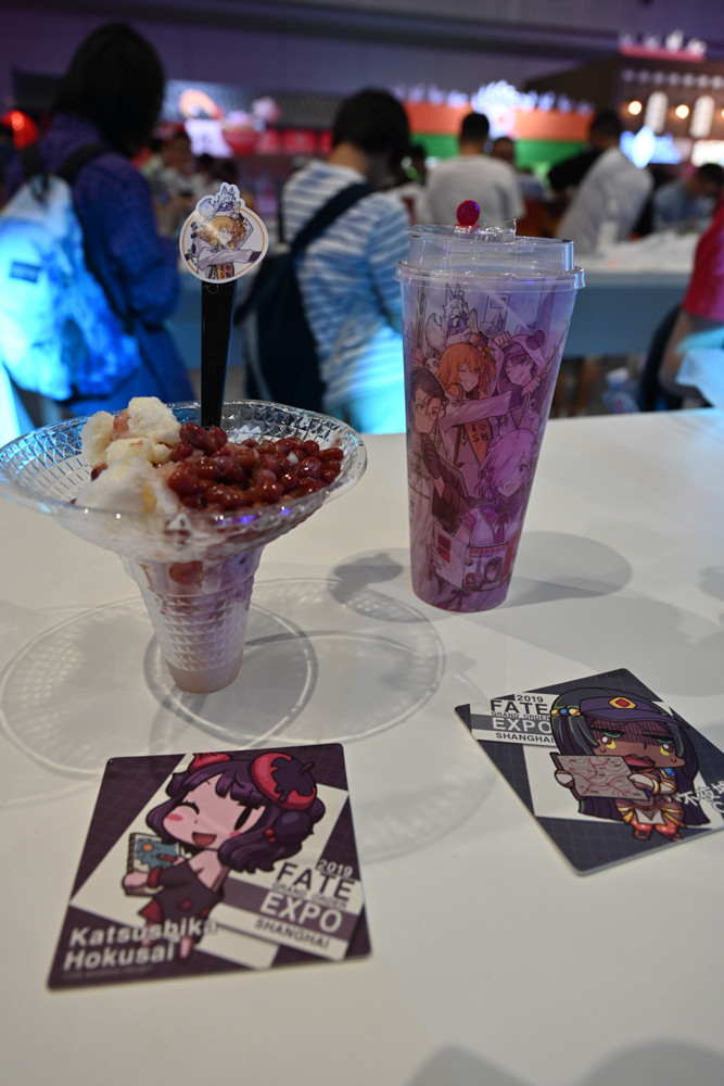 フードコートも人気。描き下ろしイラストを使ったドリンクやアイス、かき氷、麻婆豆腐にチャーハンと多種多様。これらは有料での販売ですが、それとは別に中国のアプリからFGO関連をフォローすることでカップラーメンやミニお菓子のプレゼントもあり。